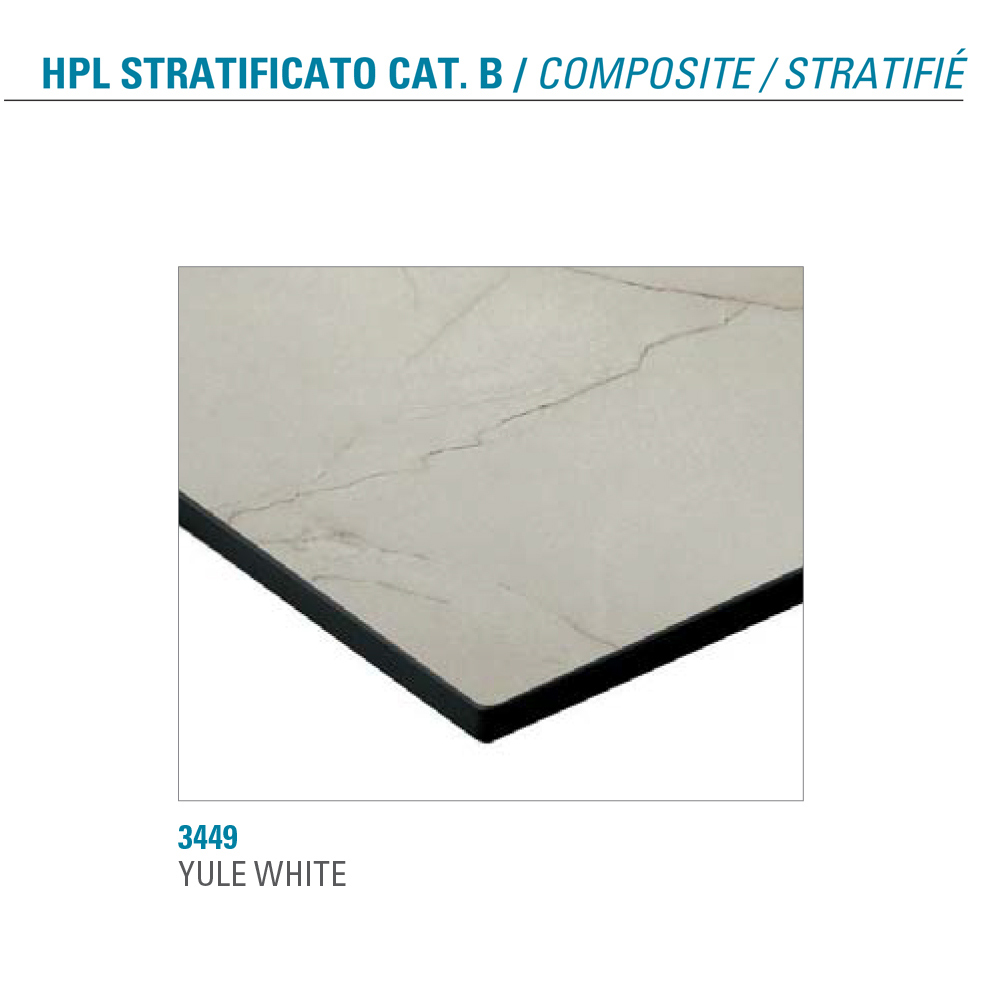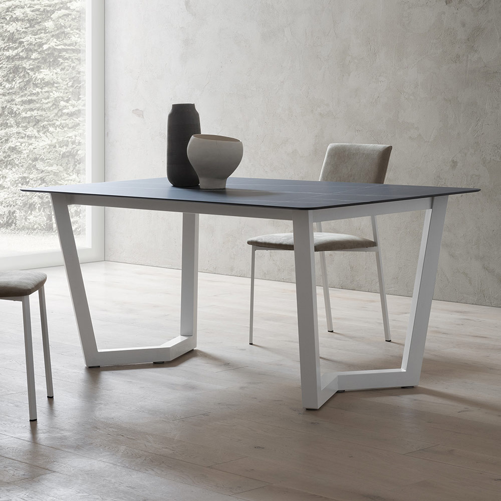 Extendable kitchen table with layered HPL top and metal base Made in Italy.