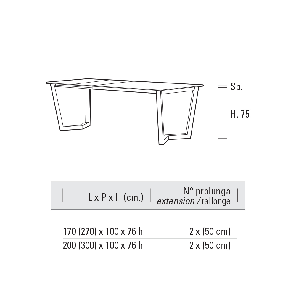made in the same material as the top, they allow this furnishing element to extend up to a maximum length of 300 cm, thus creating a