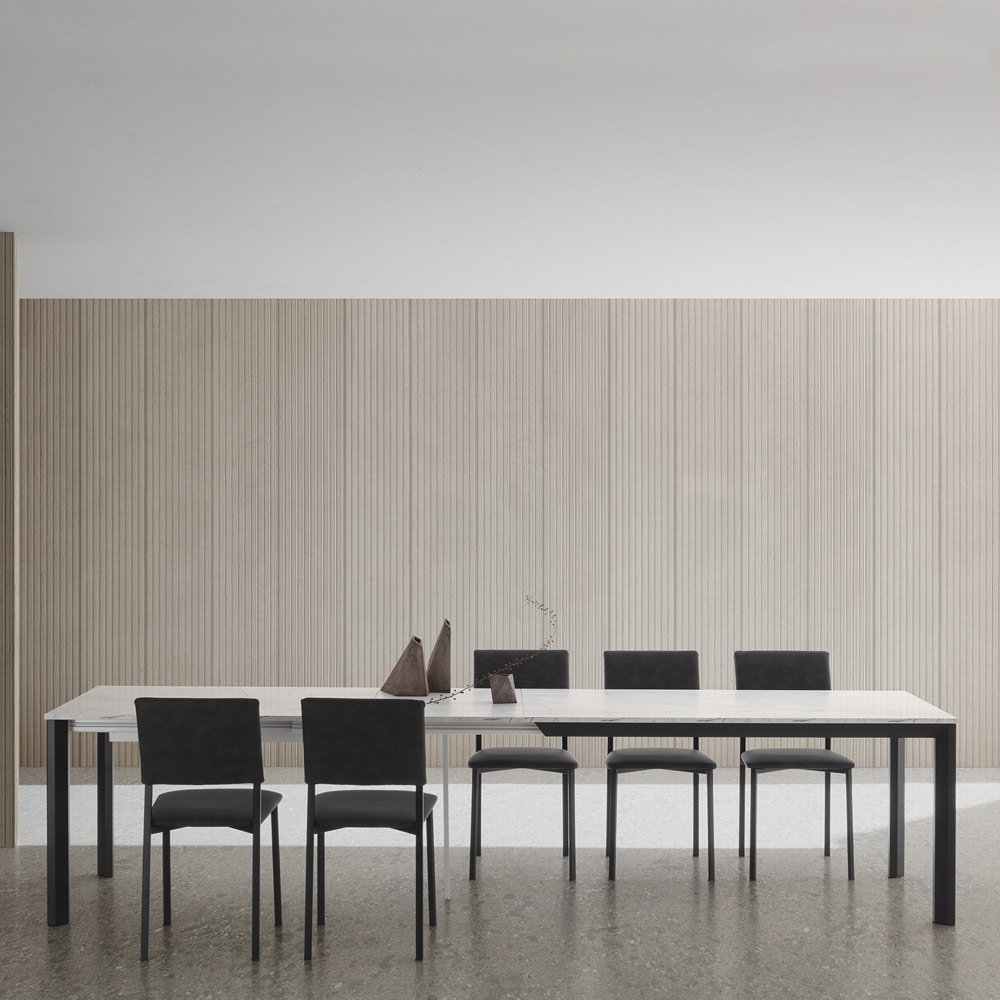 made in the same material as the top, they allow this furnishing element to extend up to a maximum length of 334 cm, thus creating a