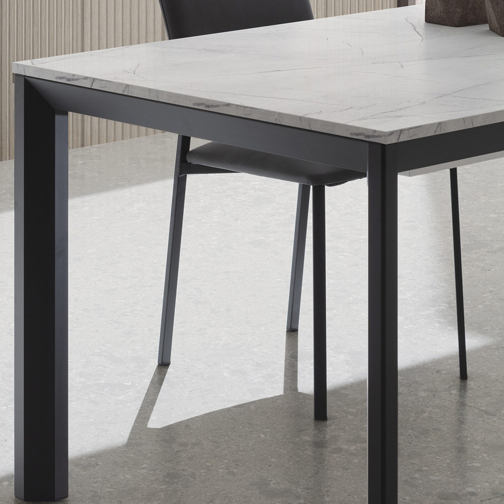 Extendable dining room table with aluminium base and HPL top Made in Italy.