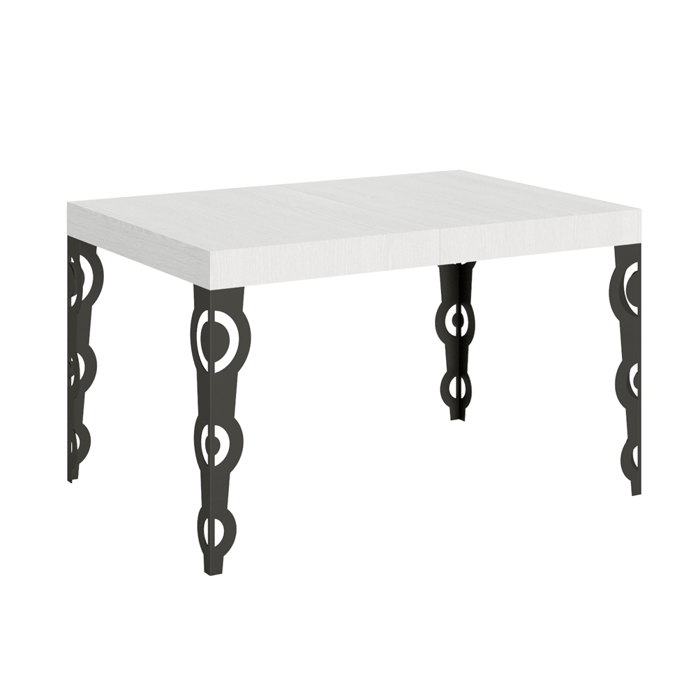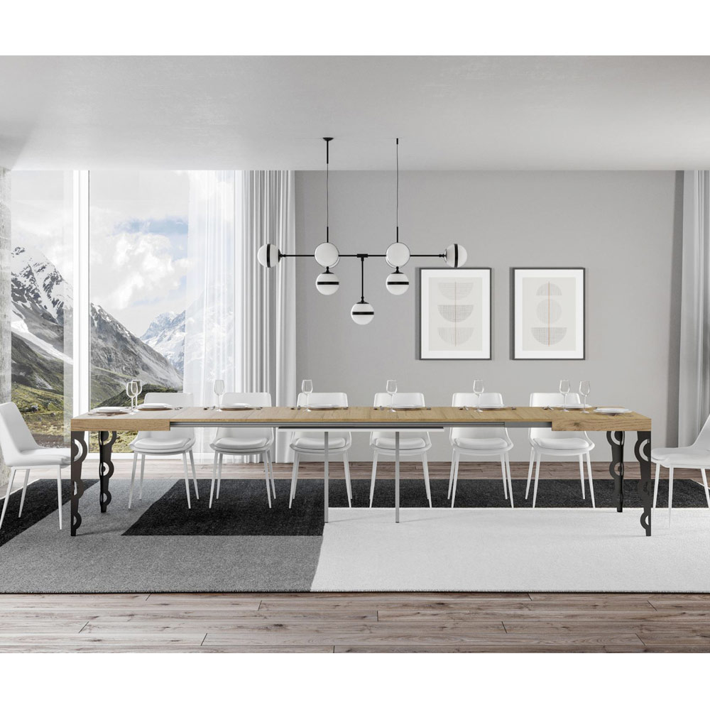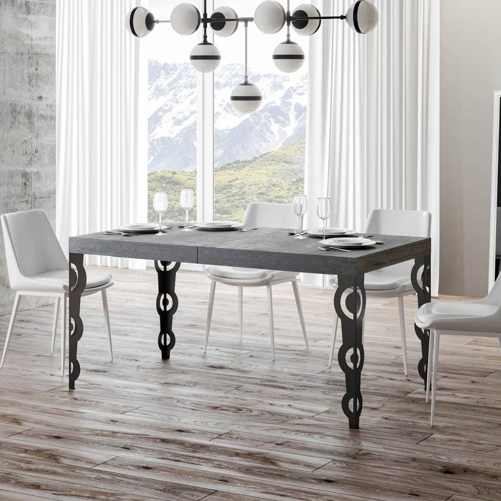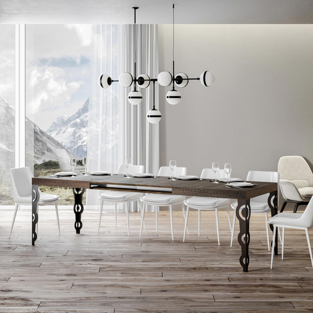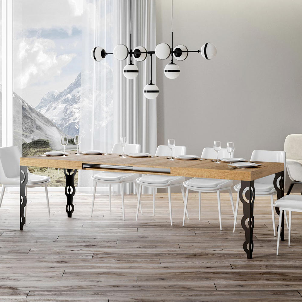 ThisĀ extendable tableĀ blends the'ancient charm of ornamental design with modern functionality. The carved iron legs feature intricate baroque patterns, a detail that is sure to catch the eye.