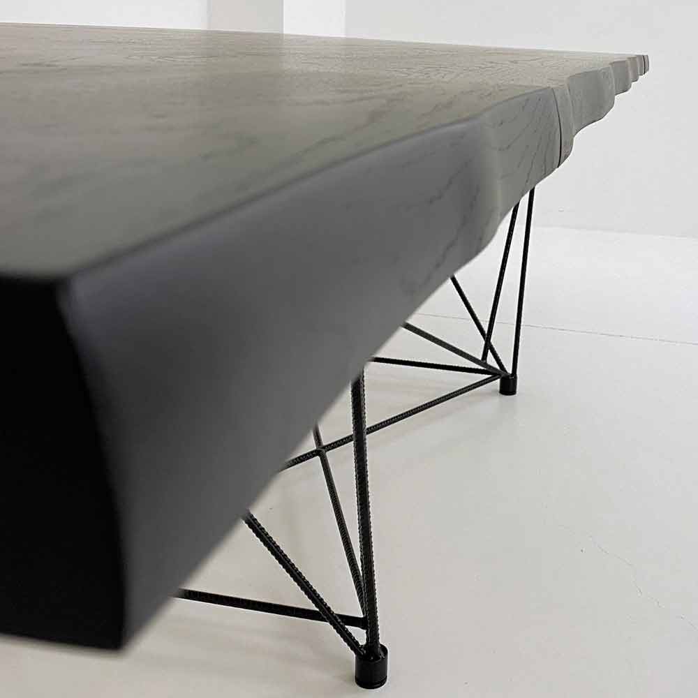 black lacquered steel base. Available in different sizes and finishes for the top: