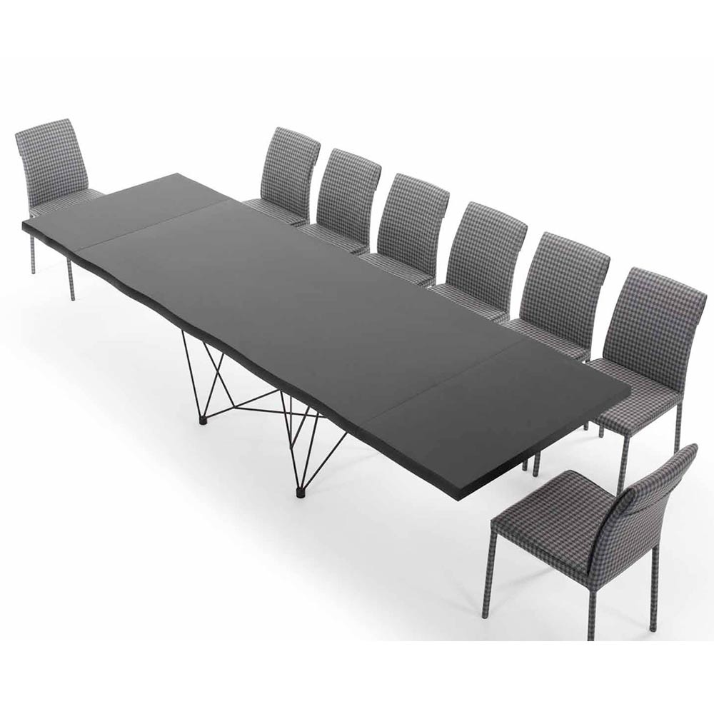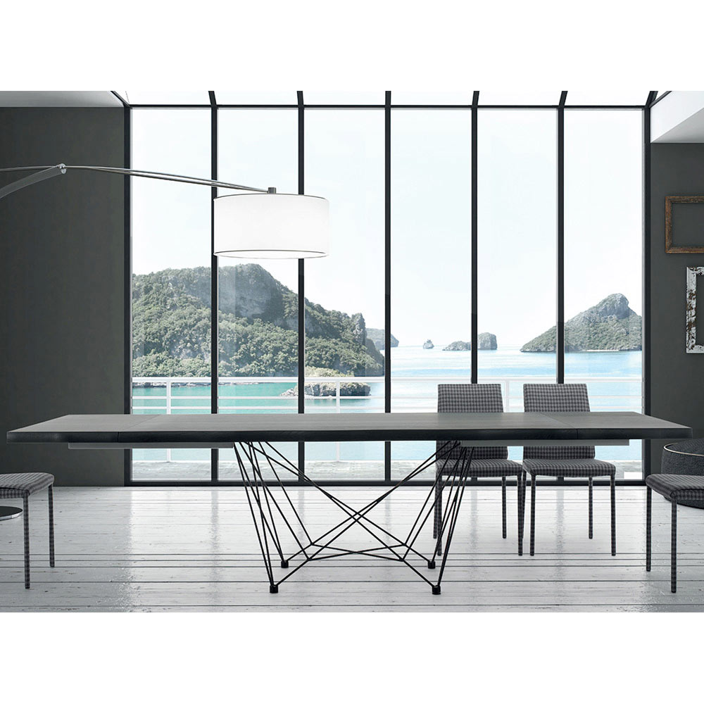 Modern extendable table up to 300 cm with veneered wood top and black steel base produced in Italy.