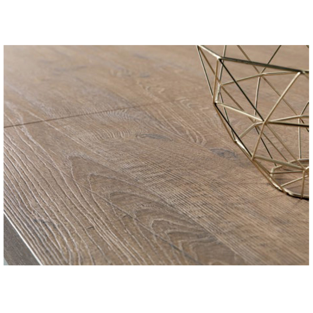 This table combines architectural creativity and contemporary sophistication , transforming any room into a stylish space . The oak plank-finish laminate top expresses all the beauty of the natural grain.