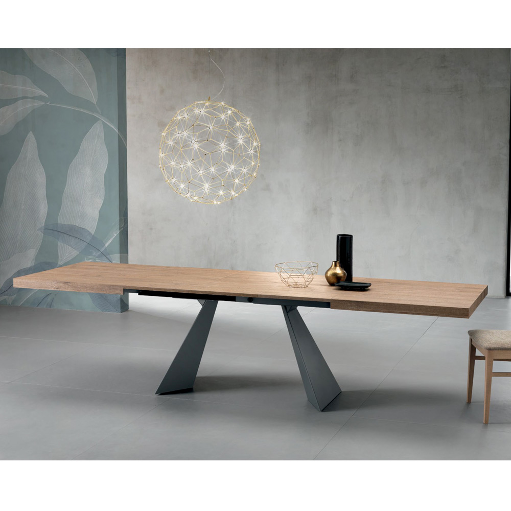 The sculptural anthracite metal base , composed of two geometric supports, offers a bold design that ensures stability and character . The combination of laminate and the solidity of the metal creates an aesthetically impeccable balance, perfect for those seeking a designer piece that is also functional.
