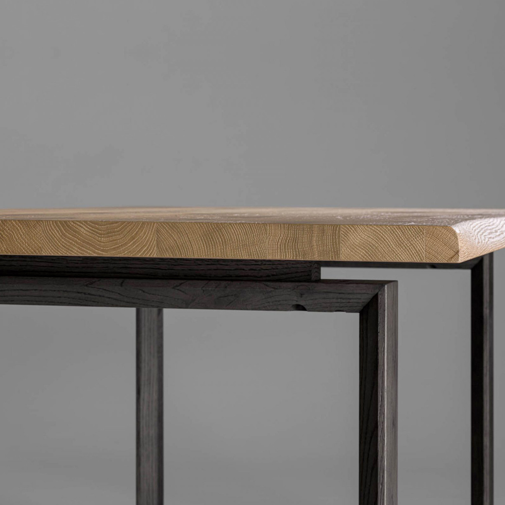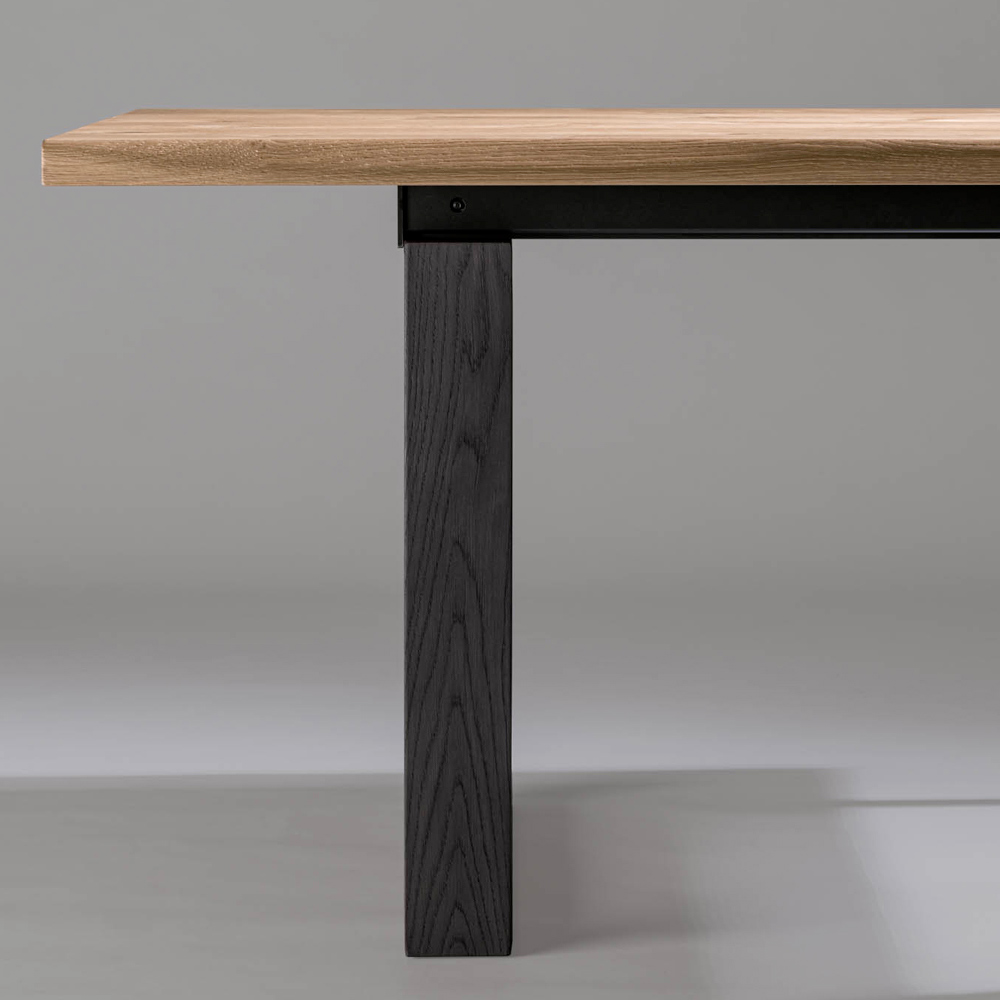 solid wood painted in smoked oak. 2 extensions of 50 cm each are included, one under the table and the other external.