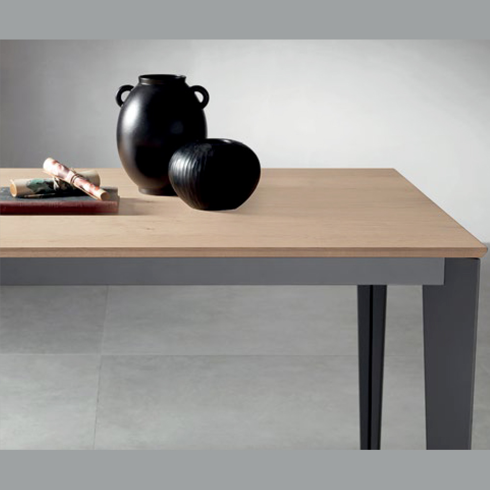 Extendable table in oak and metal