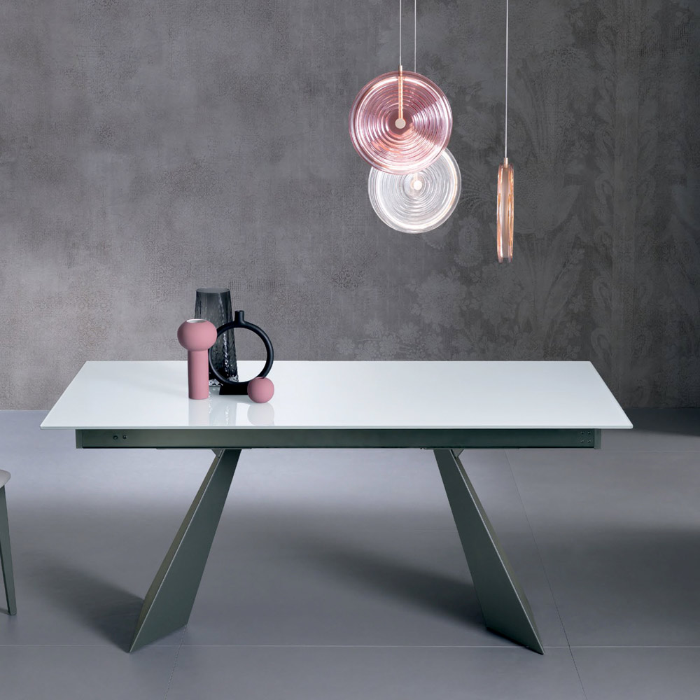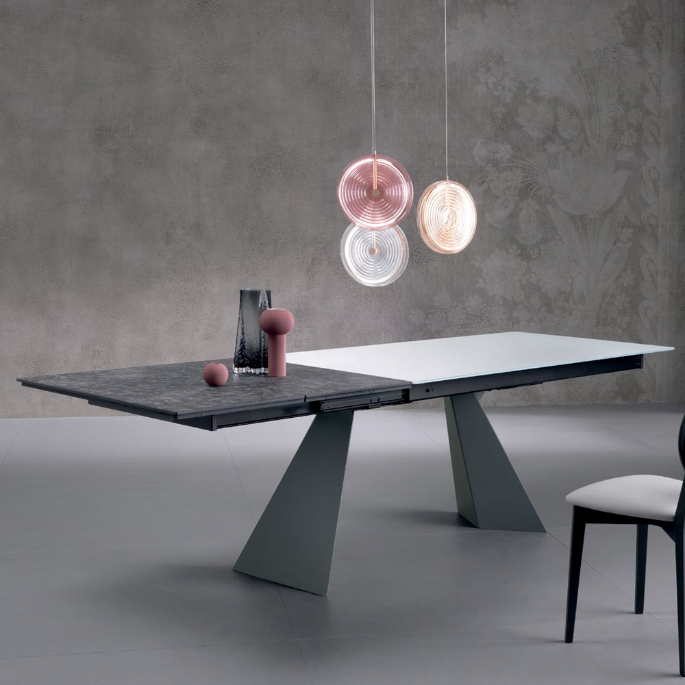 Extendable Table with Side Extension in Milk Glass - Aperol