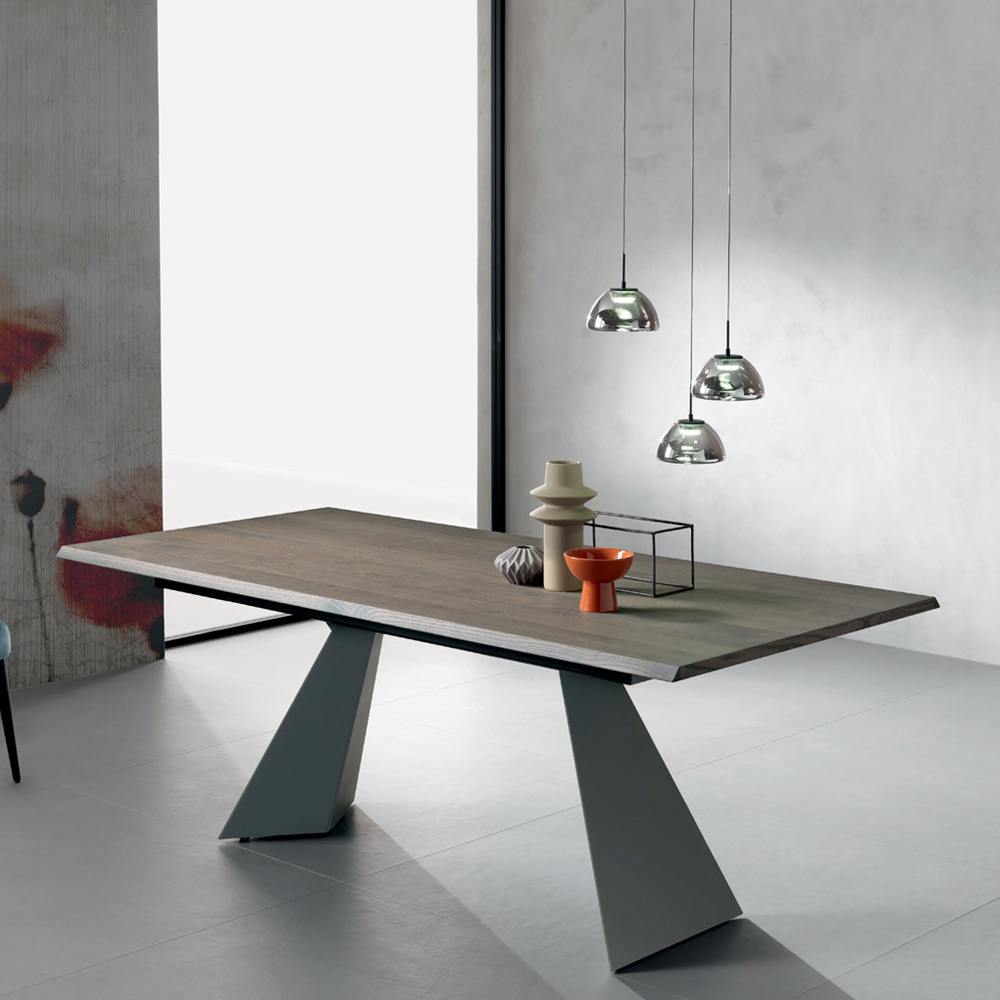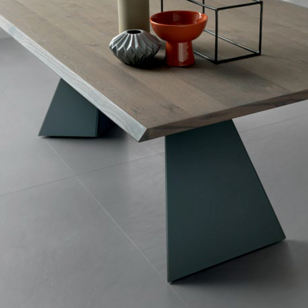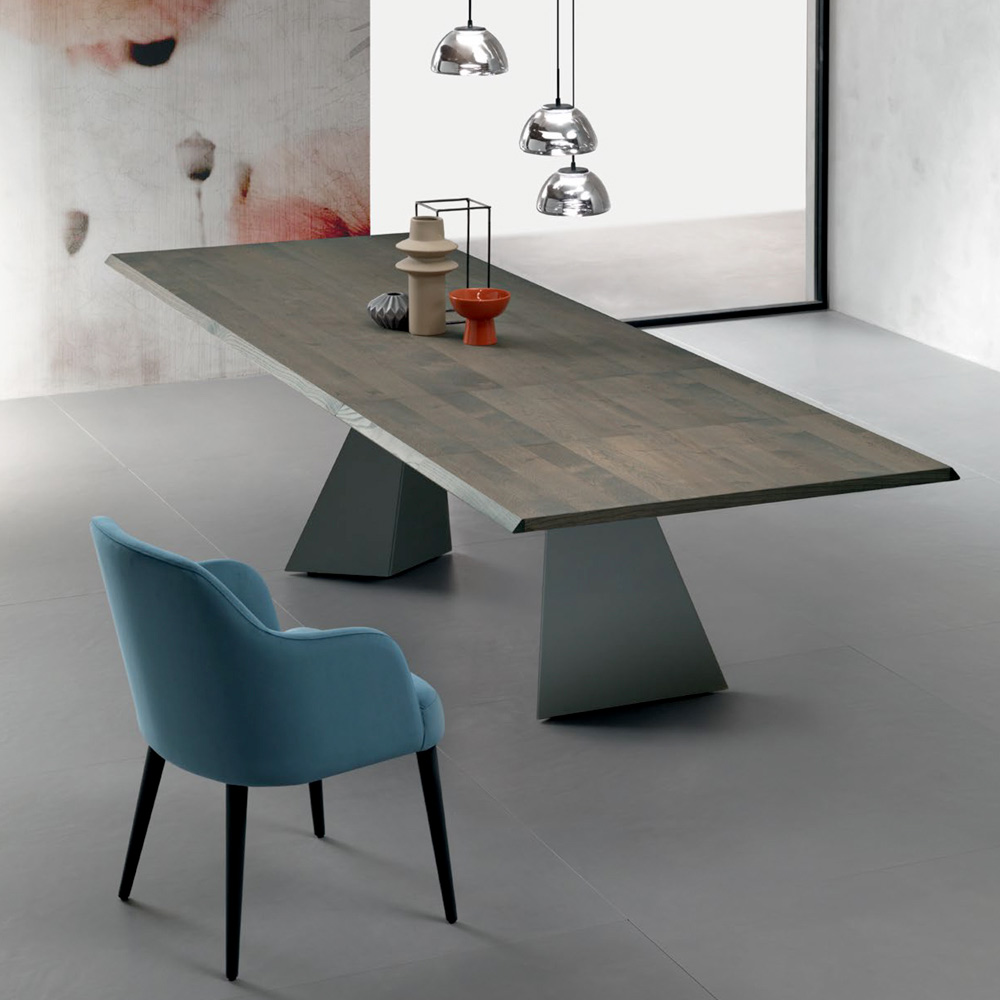 The sculptural anthracite metal base , composed of two geometric supports, offers a bold design that ensures stability and character . The combination of the warmth of wood and the solidity of metal creates an aesthetically impeccable balance, perfect for those seeking a designer piece that is also functional.