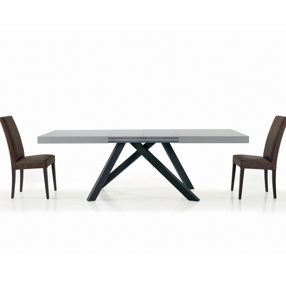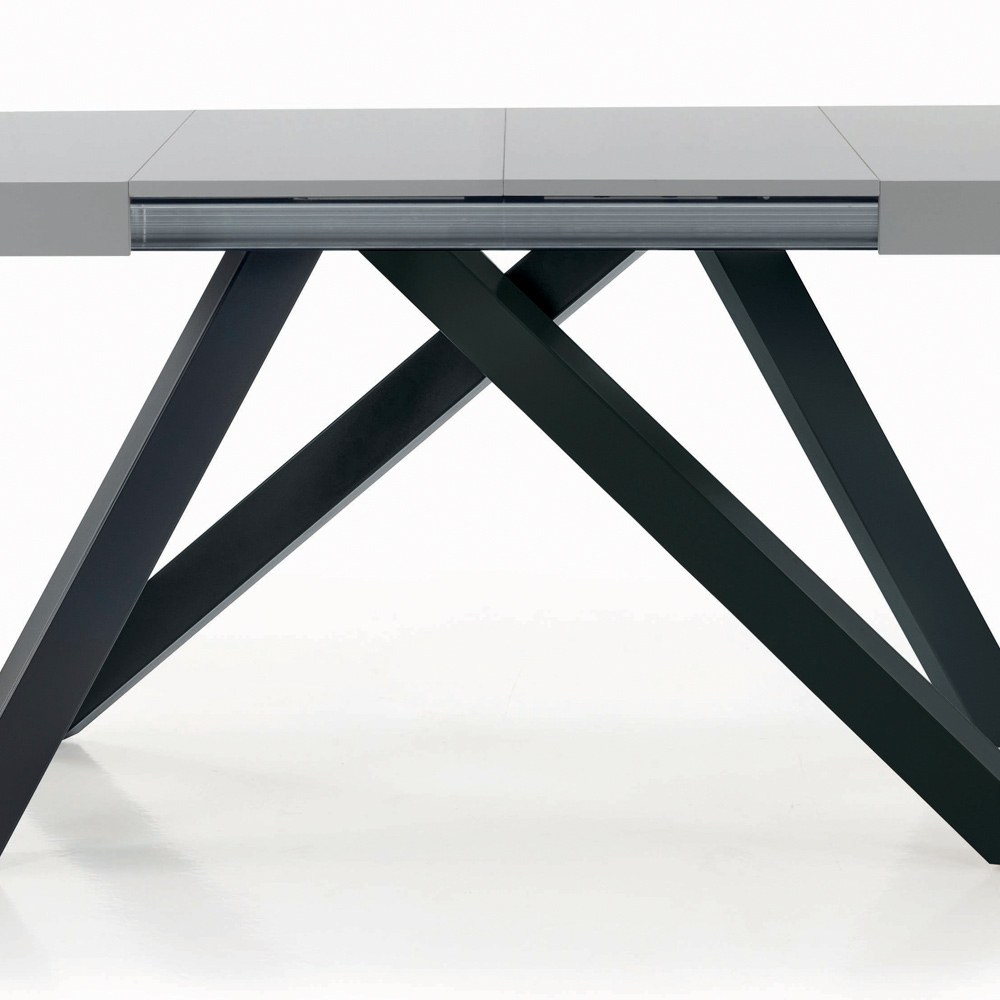 Extendable lounge table with synchronized central opening (internal extensions), matt white laminate top