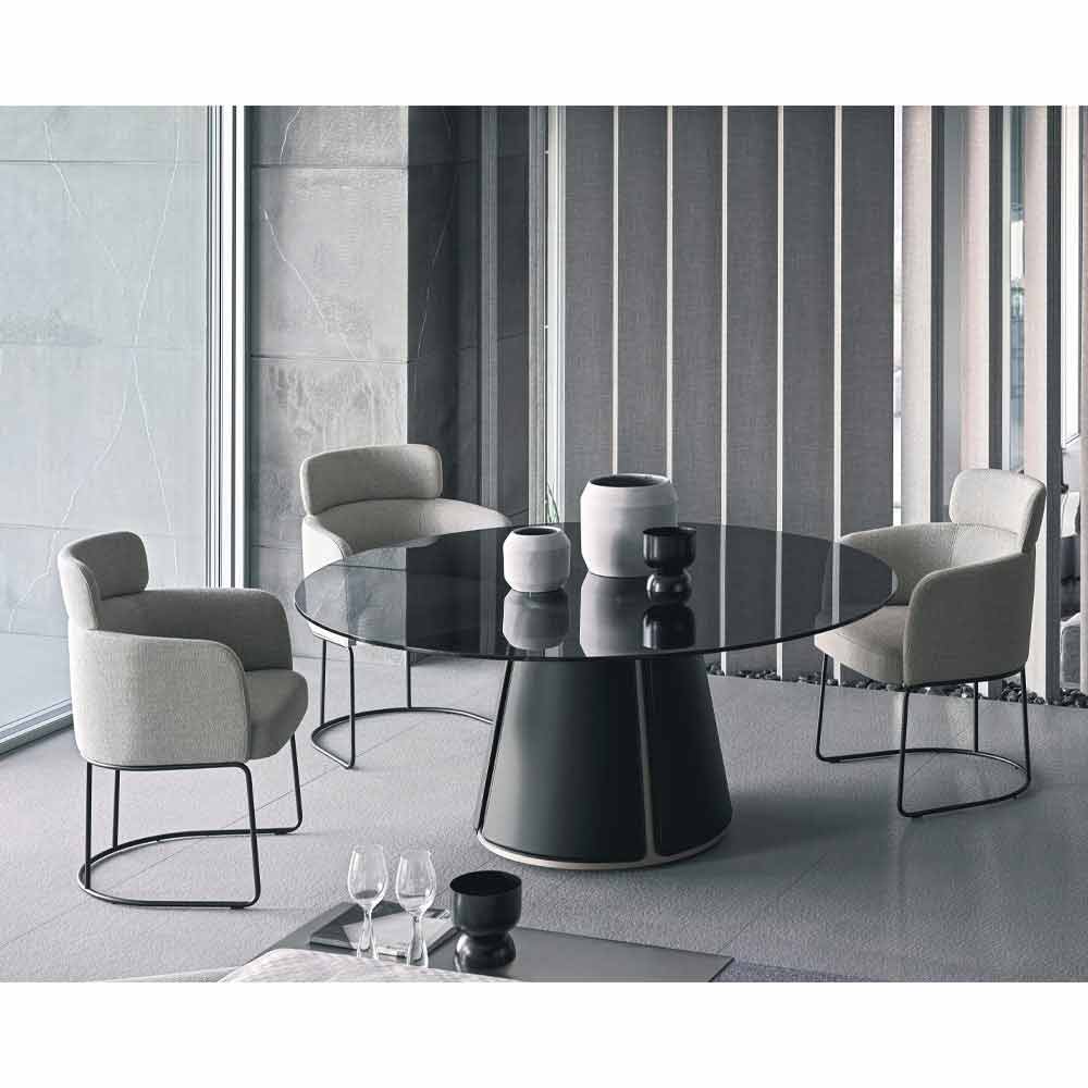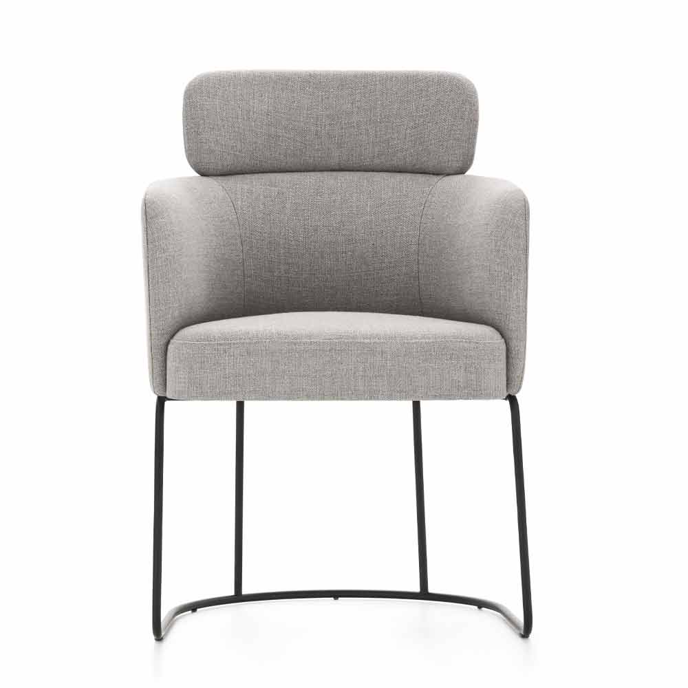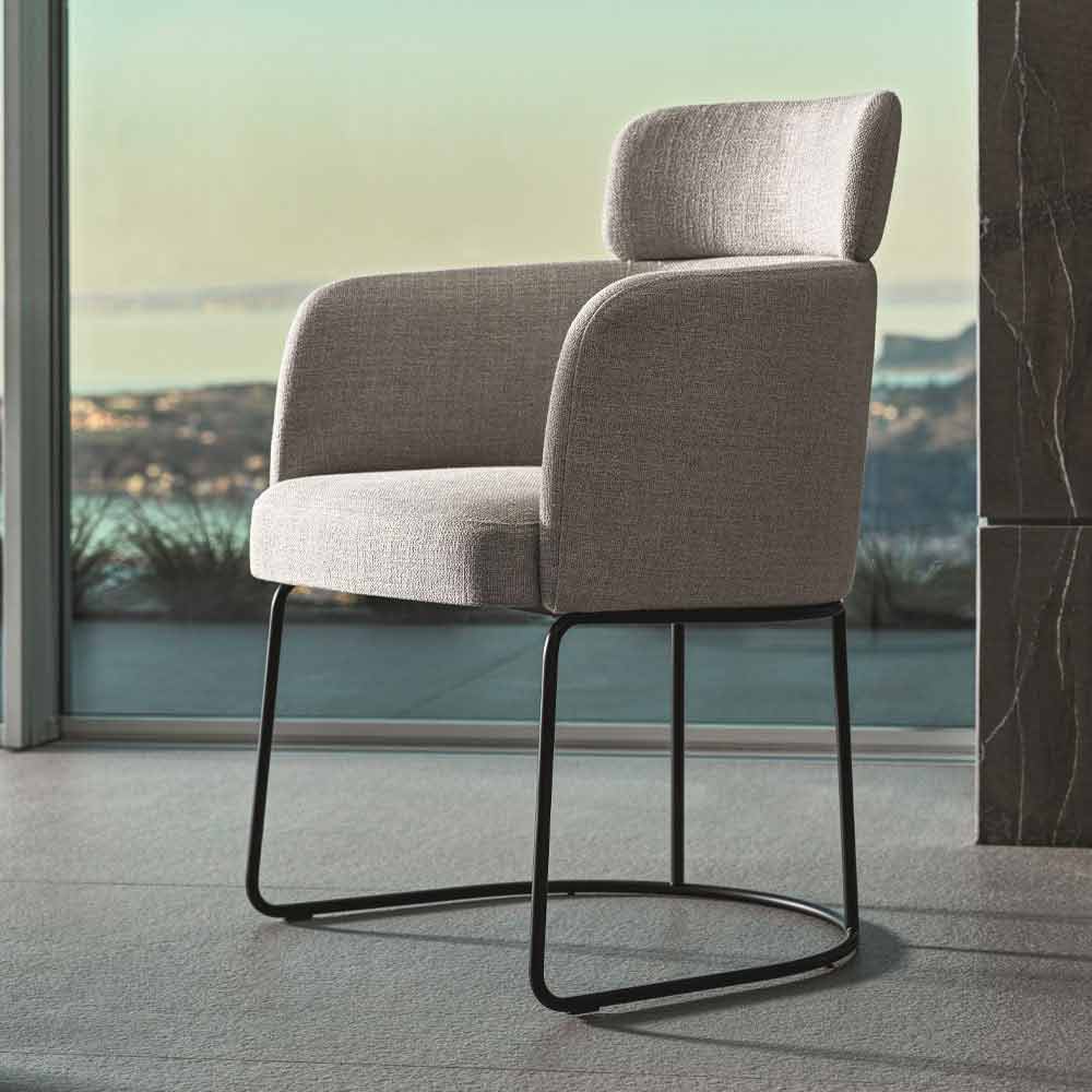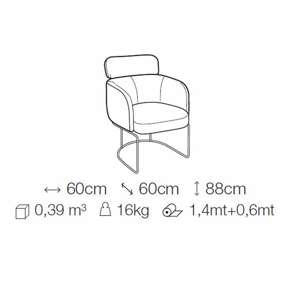 fabric (not removable). Soft and enveloping shapes give life to a particularly modern and exclusive furnishing solution. Thanks to its curved shape, the body recreates the feeling of a real hug, managing to give life to a small nest in which to be pampered and relax to spend wonderful moments during lunches and dinners with chinas.