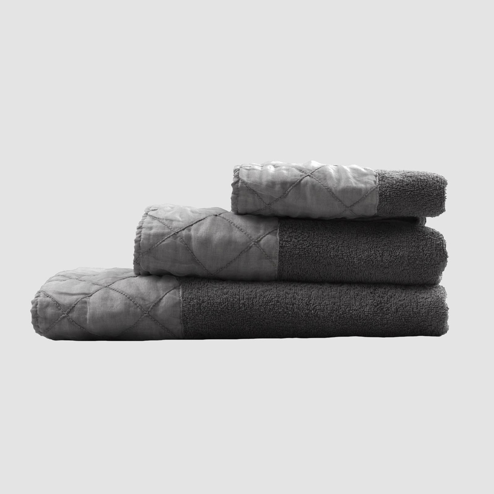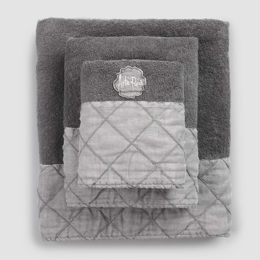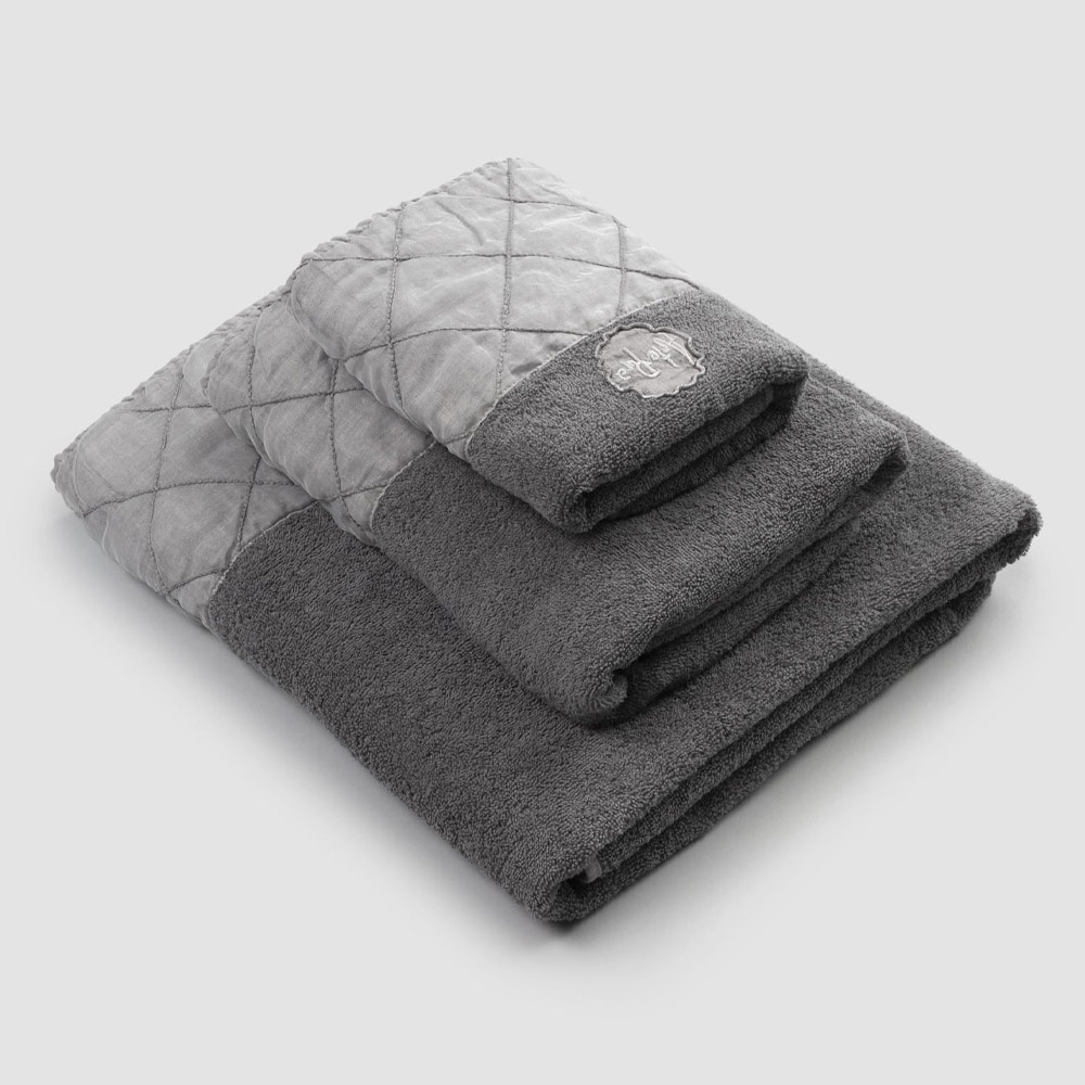 face and guest towels and shower towel in cotton terry , with an anthracite grey