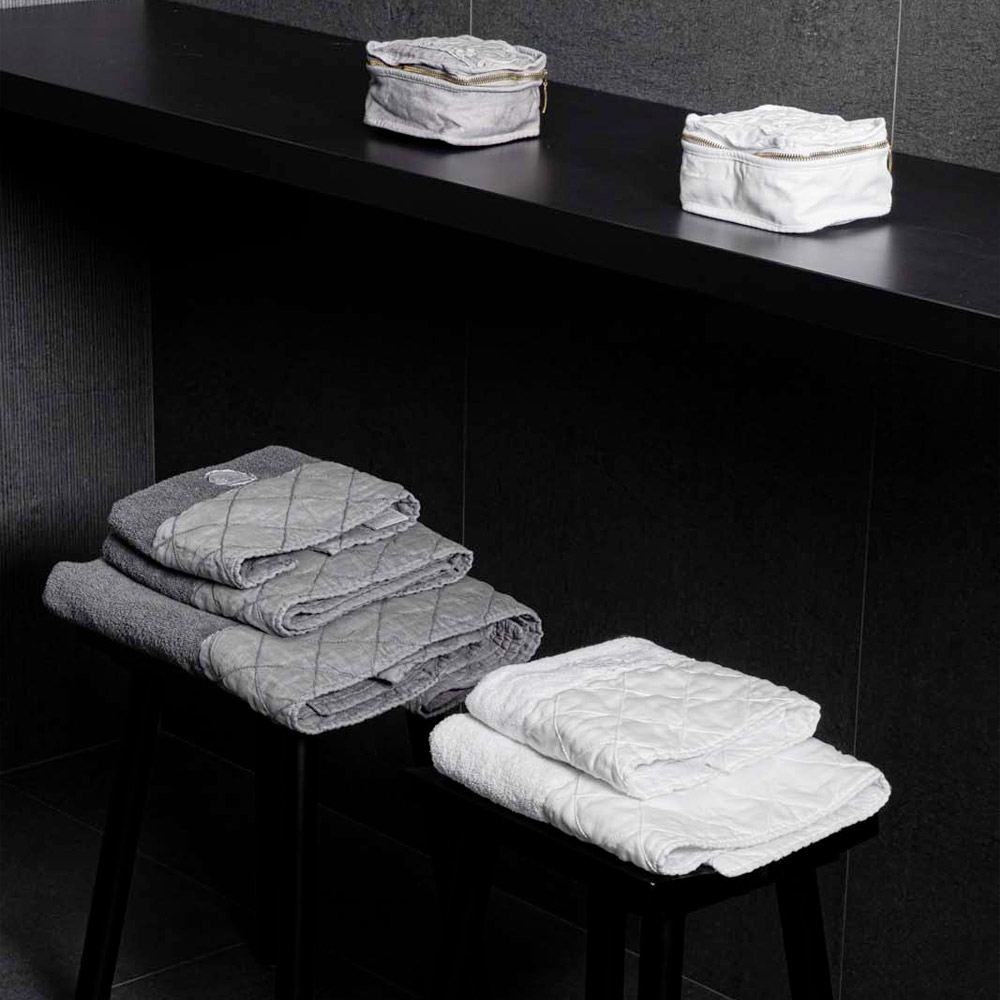 of high quality cotton and made soft to the touch thanks to special treatments that enhance its natural appearance. It is an ideal fabric for the bathroom as it is