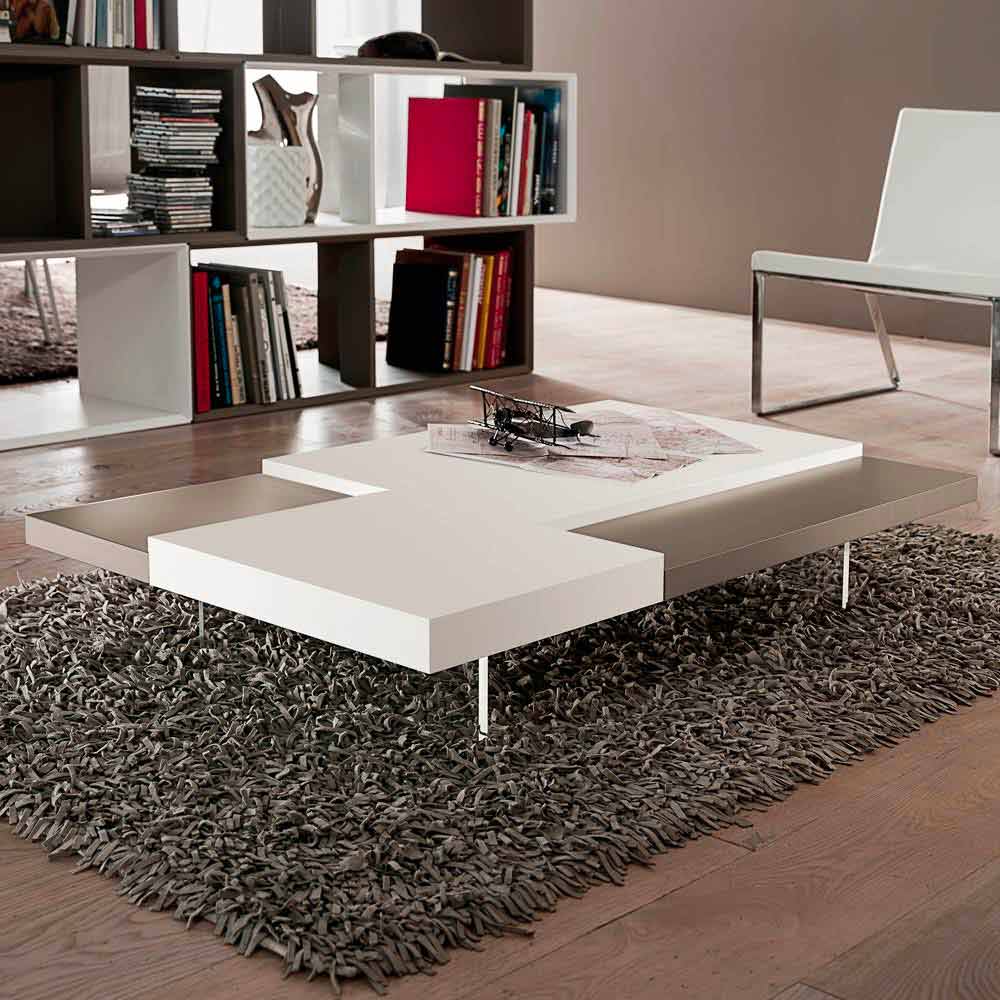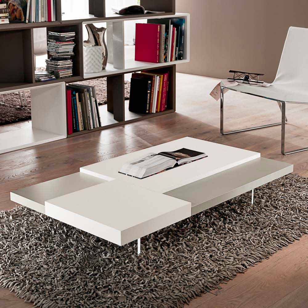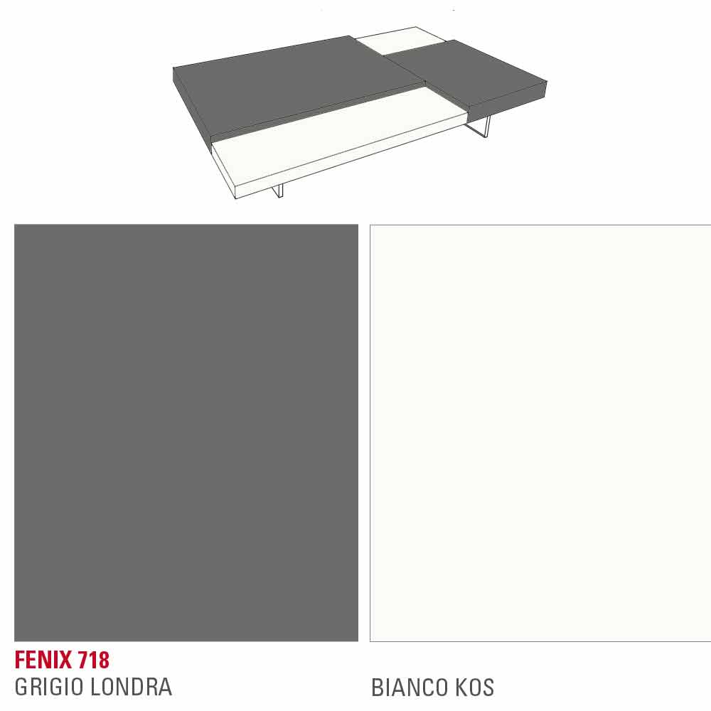 transparent polymethylmethacrylate feet. In any lounge, the presence of a coffee table is essential which, in addition to representing a practical and functional support surface, gives harmony to the furniture and completes its aesthetics thanks to captivating and original queues and shapes. This piece of furniture embodies all the fundamental characteristics of a perfect coffee table, proving to be an excellent idea for those who love to decorate their spaces with elements with a simple but impactful style. The particular shape of the tops placed at different heights plays an important role in the design of the product as it offers an exclusive play of contrasts. Furthermore, the