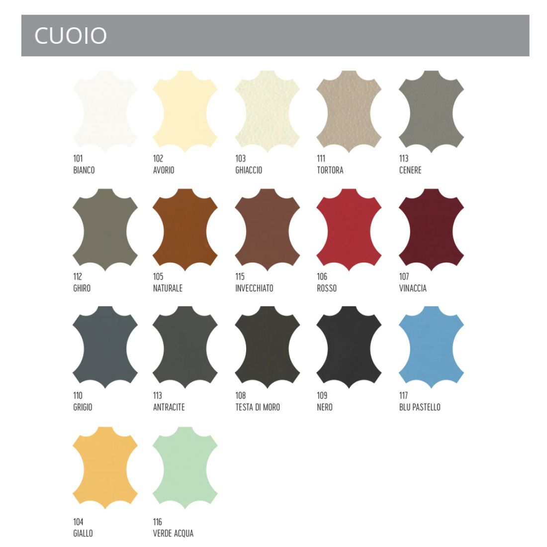 View the colour chart corresponding to the type of leather desired and indicate the code of the colour you have chosen in the appropriate box.
