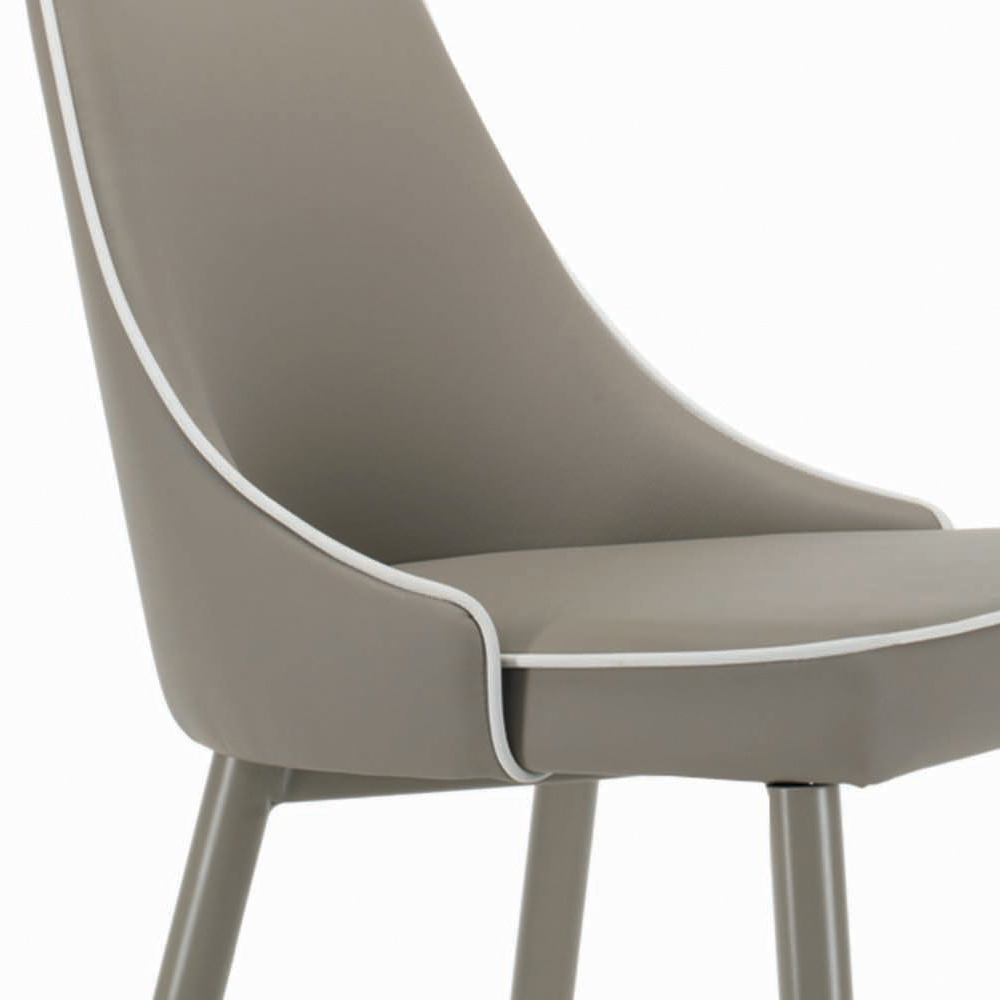 lacquered steel. The soft and enveloping lines of the seat and backrest are characterized by reassuring shapes. Ideal in the dining room, as well as in the kitchen, it will personalize the environments with design and functionality. It embodies style, quality, design and elegance. Thanks to its sinuous, simple and stylized queues it is suitable for any type of furniture.