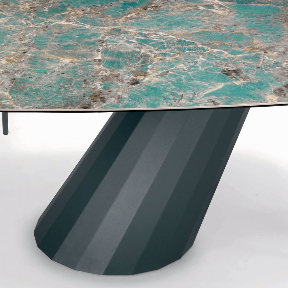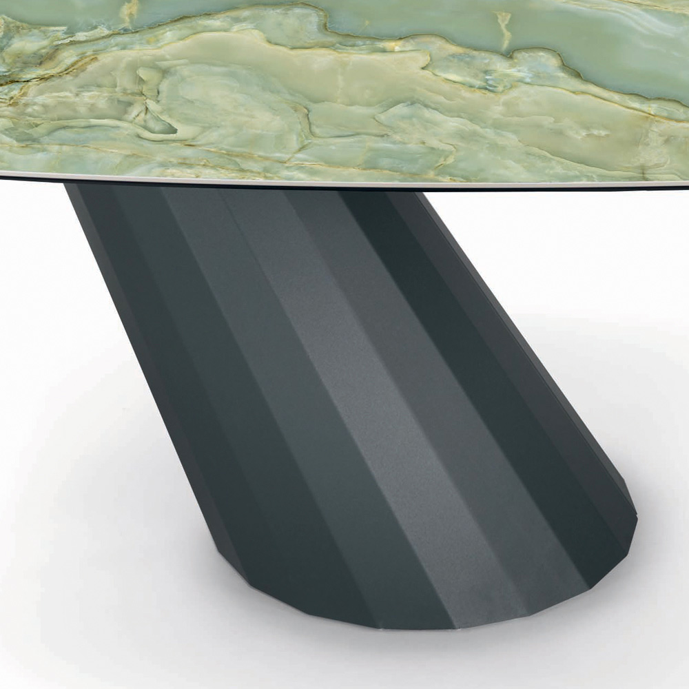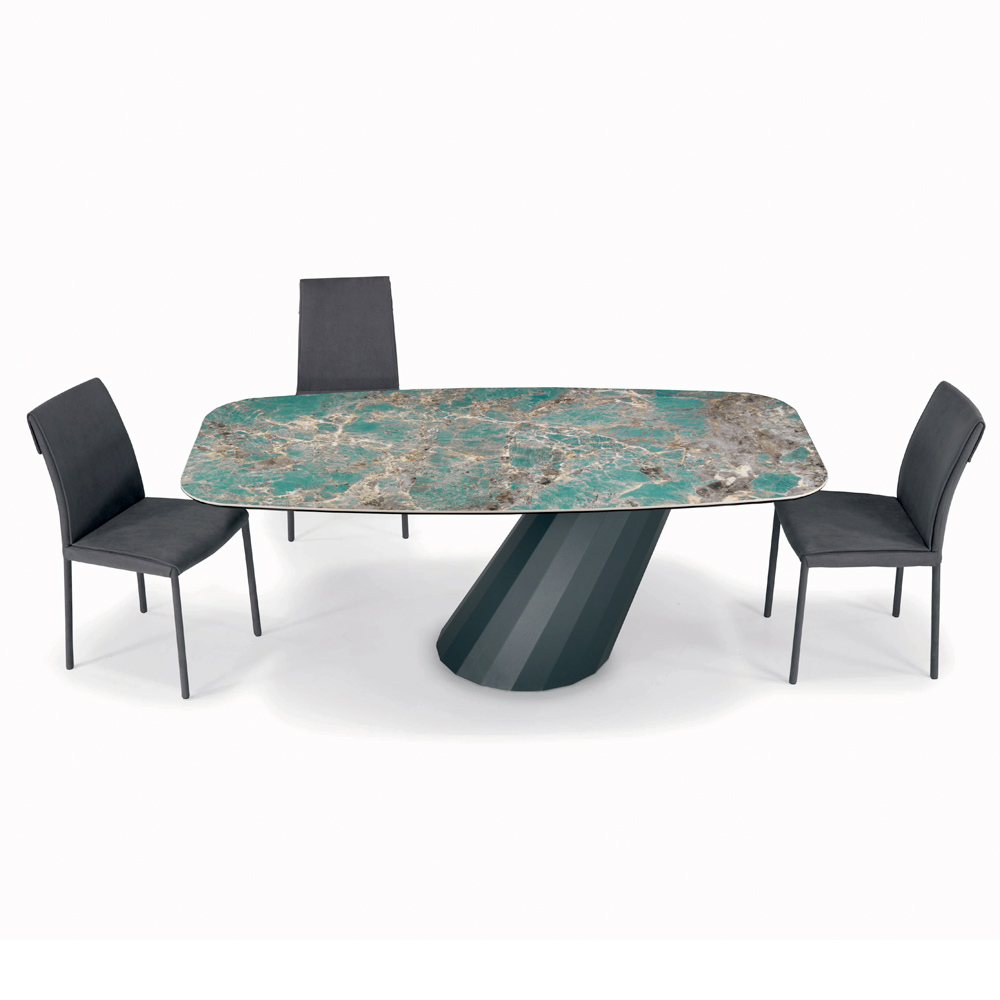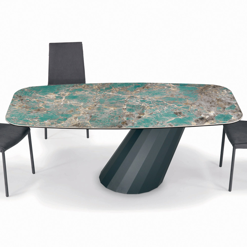 refinement of the shape of the base combined with the finish of the top you choose creates a unique table, with a great visual impact that furnishes everyday and contract environments with