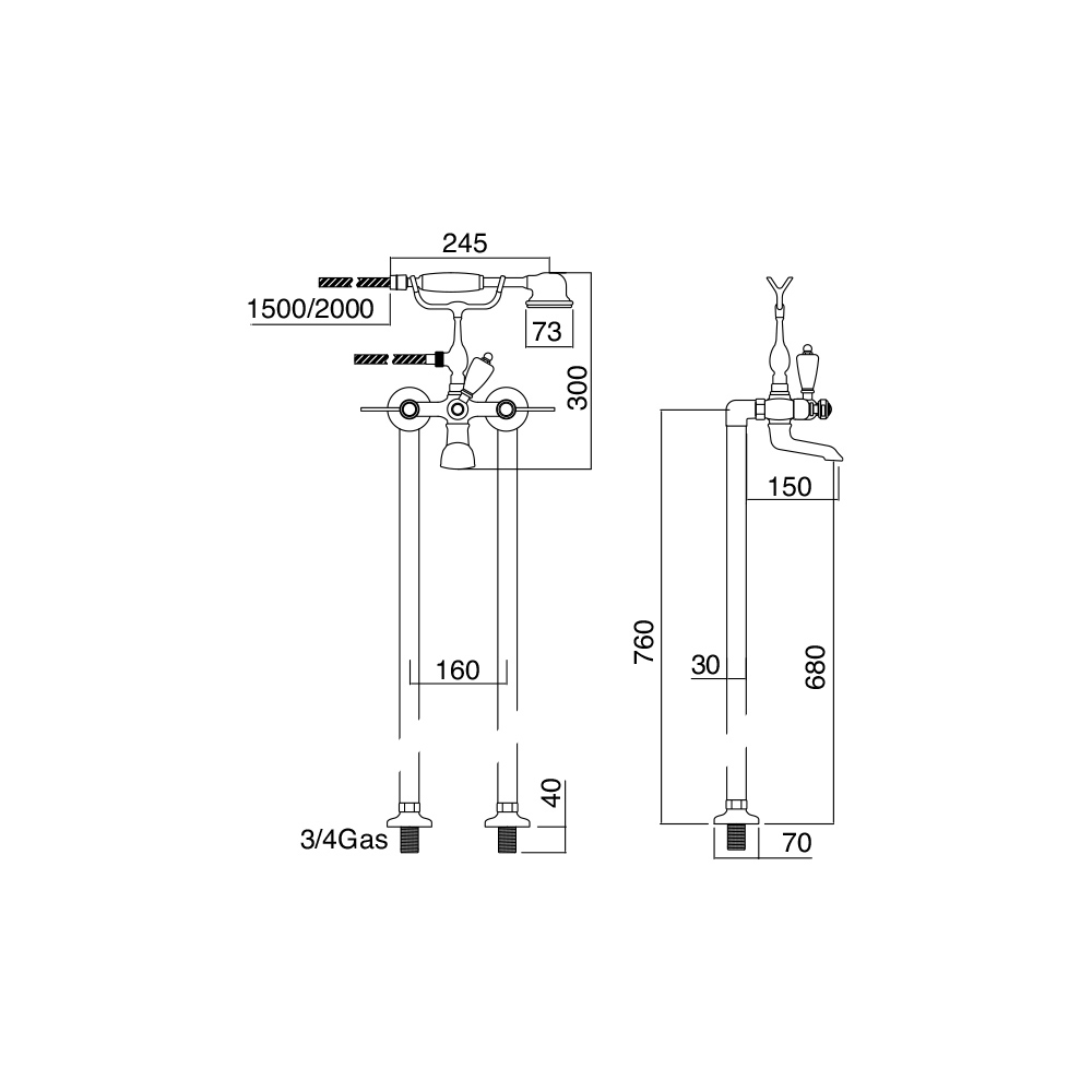 Heavy brass floor-standing bathtub assembly Made in Italy