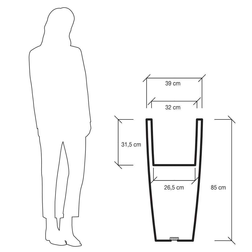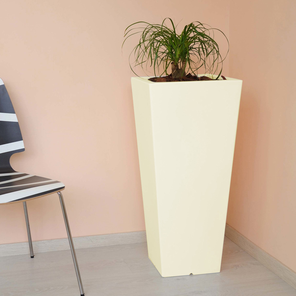 Tall vase with a square shape, elegant and full of style suitable for any garden. Made of polyethylene, it is