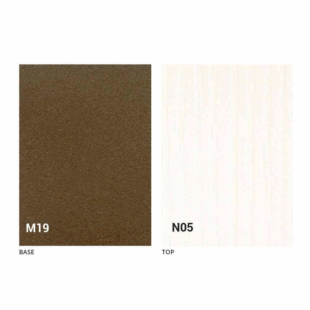 embossed bronze painted metal. Available in different finishes:- white matrix melamine wood top,