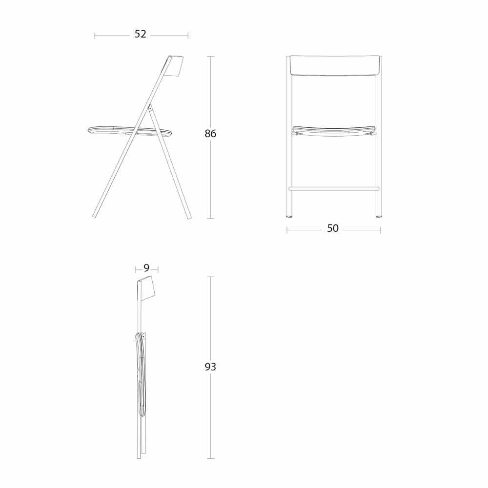 This comfortable chair is characterized by its simple and minimal design, classically inspired, functional and foldable to maximise space and use it according to need. Thanks to its essentiality, it can be combined with different furnishing contexts by virtue of a sober and refined design.