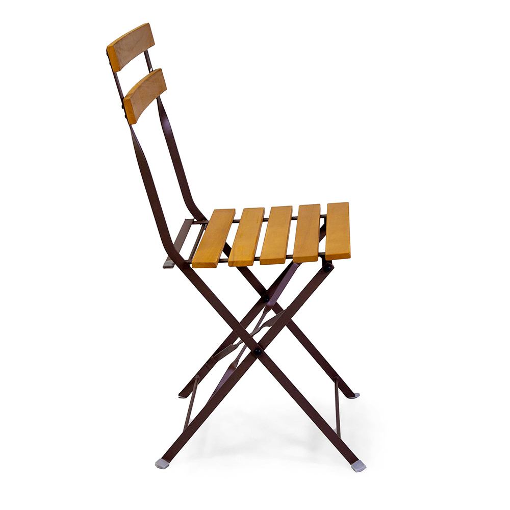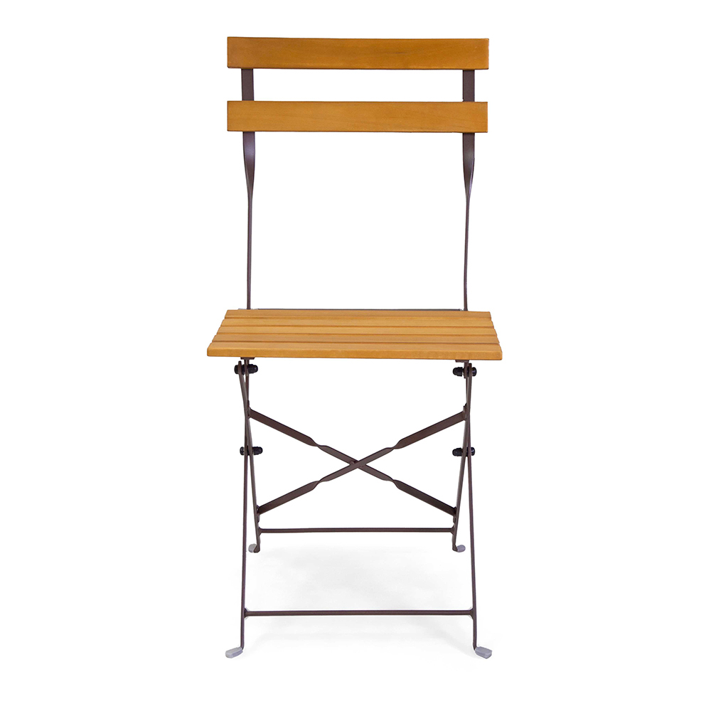 Folding Metal Chair with Acacia Wood Seat and Backrest - Estate