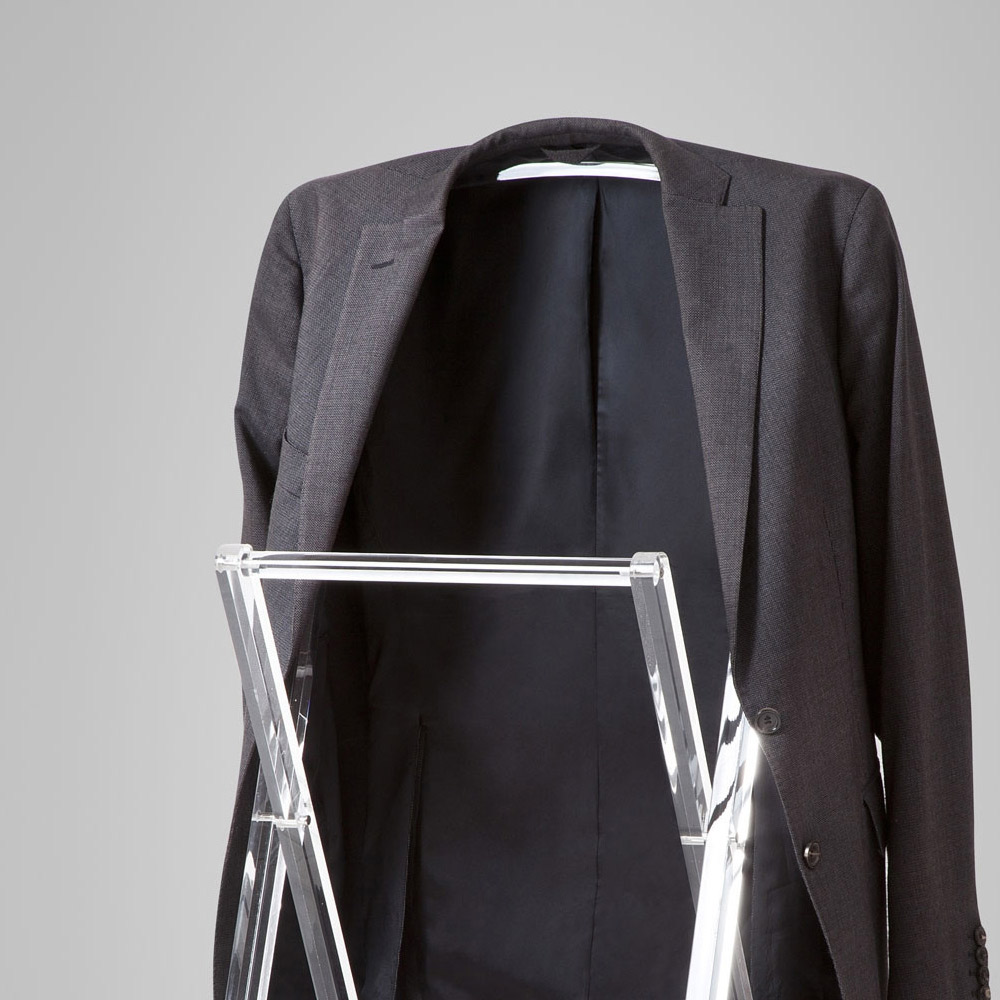 Folding valet stand in transparent acrylic crystal made in Italy.