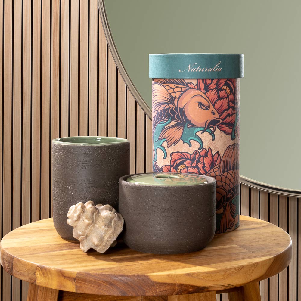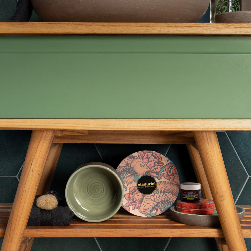 Bathroom accessories in refractory clay with green enameled interior Made in Italy.