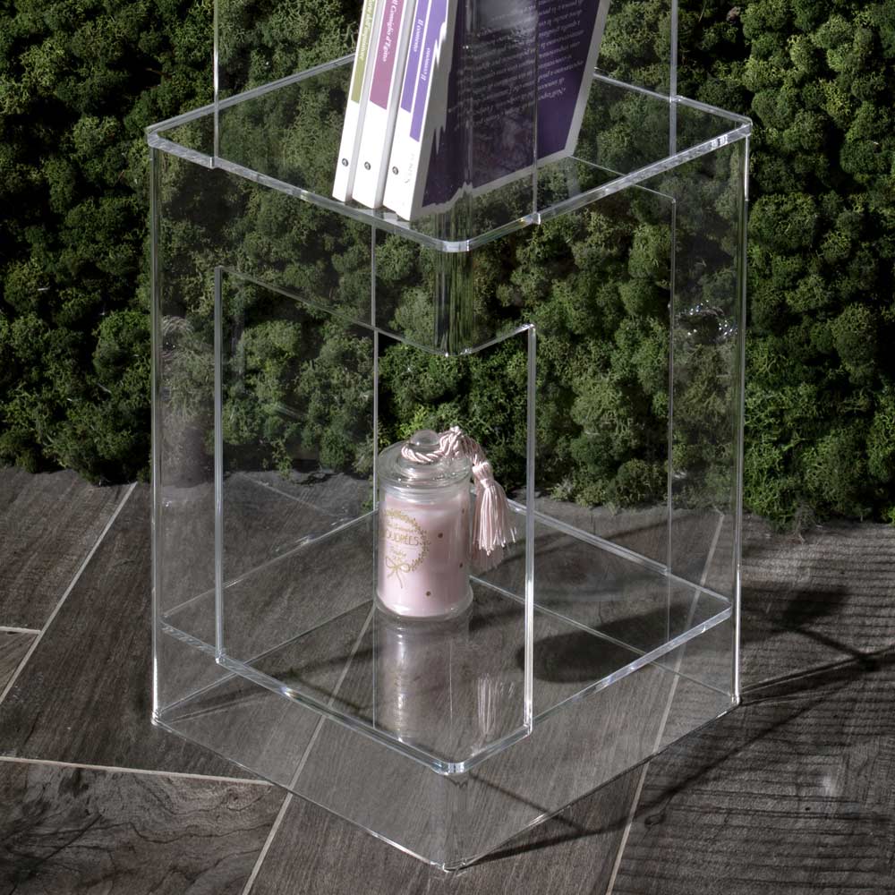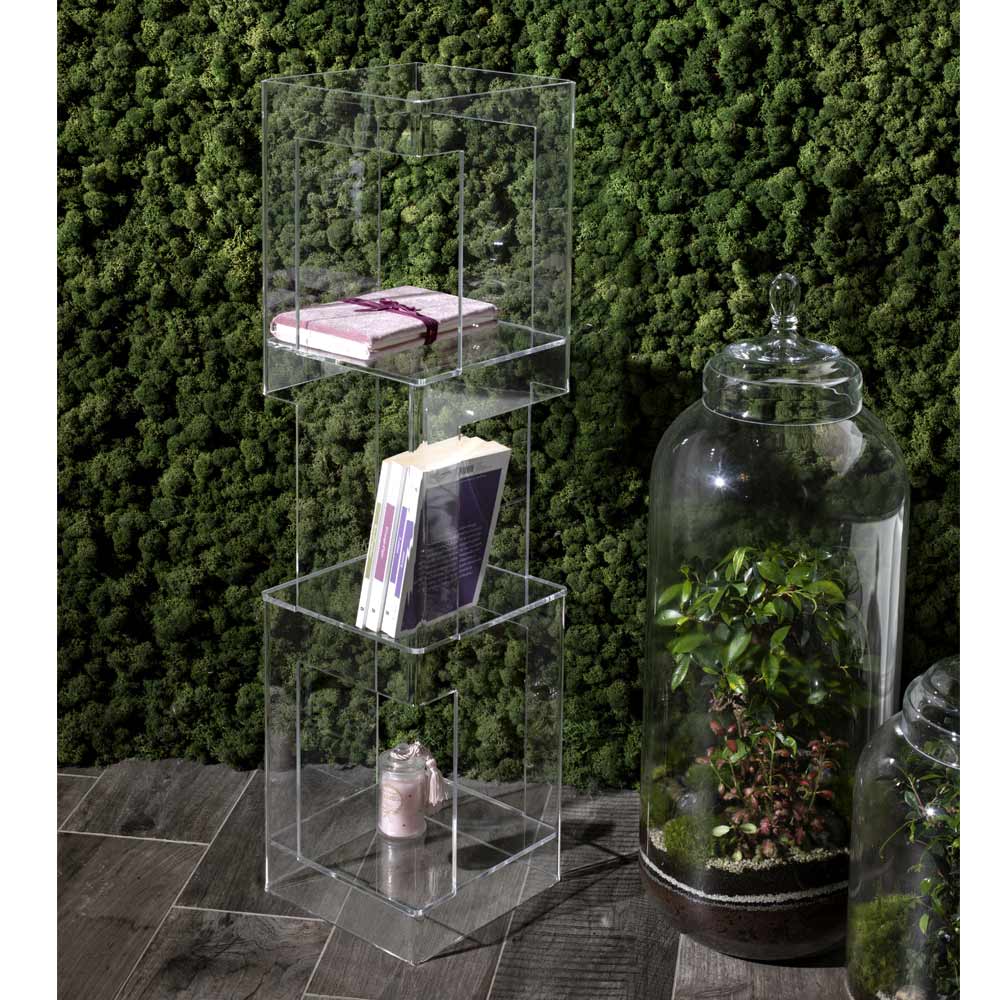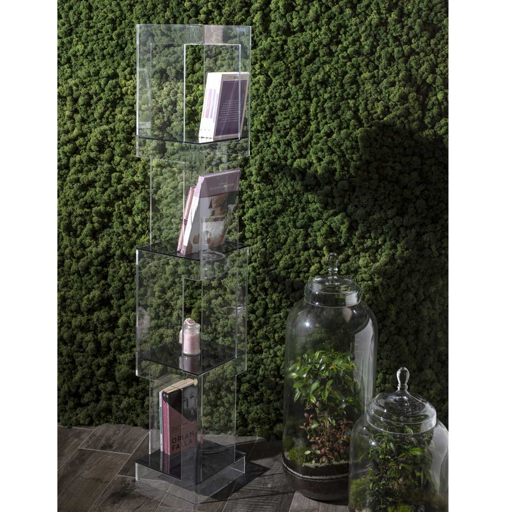 Freestanding bookcase in acrylic crystal 2 finishes and 2 sizes made in Italy.