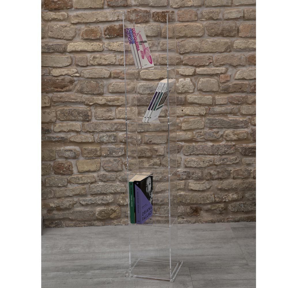 Freestanding bookcase in transparent acrylic crystal, design made in Italy.