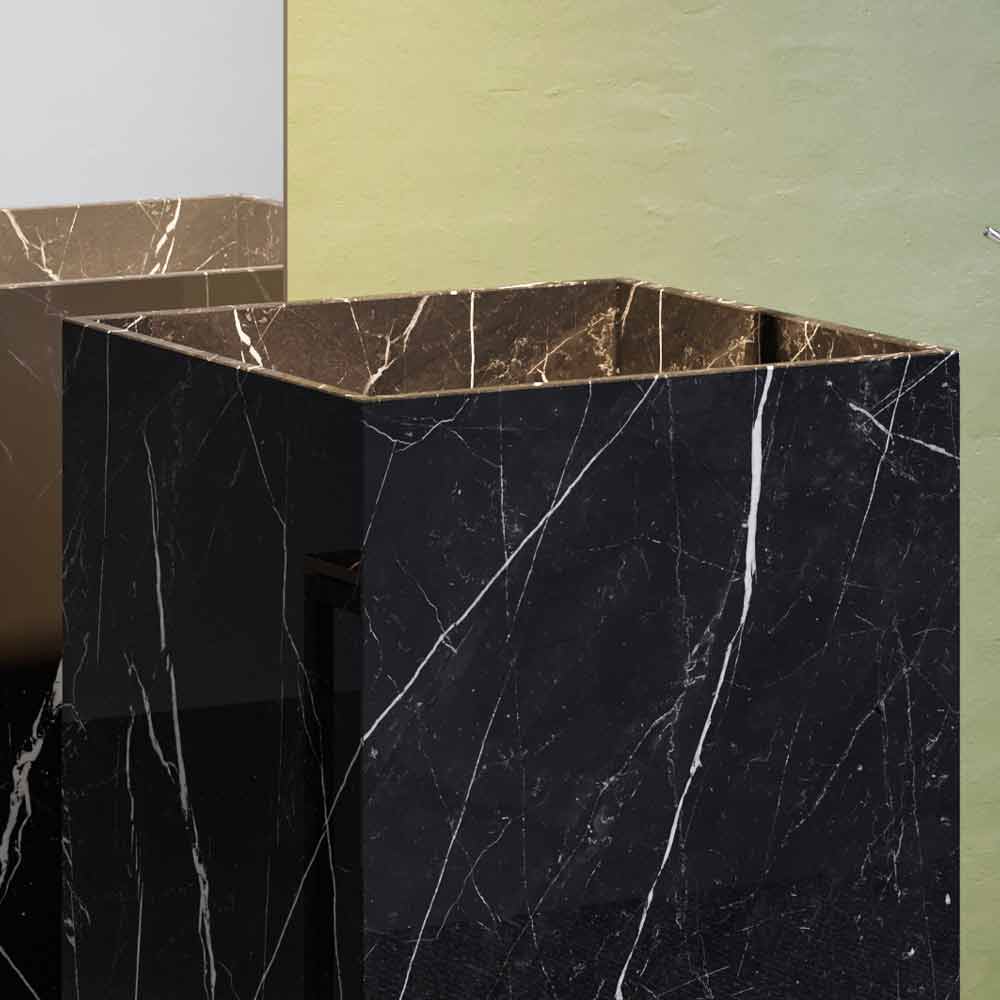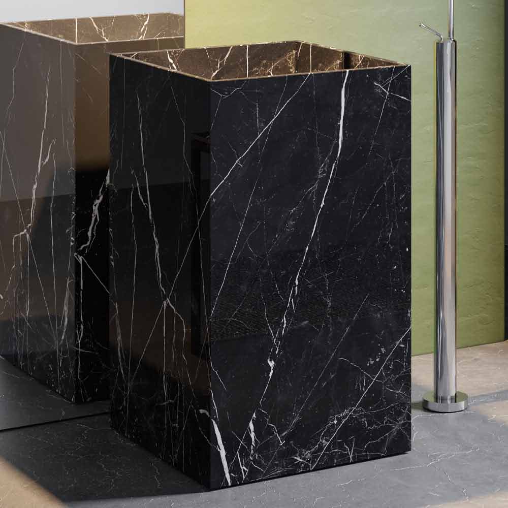 Free-standing washbasin for the bathroom in porcelain stoneware, geometric design, high quality made in Italy.
