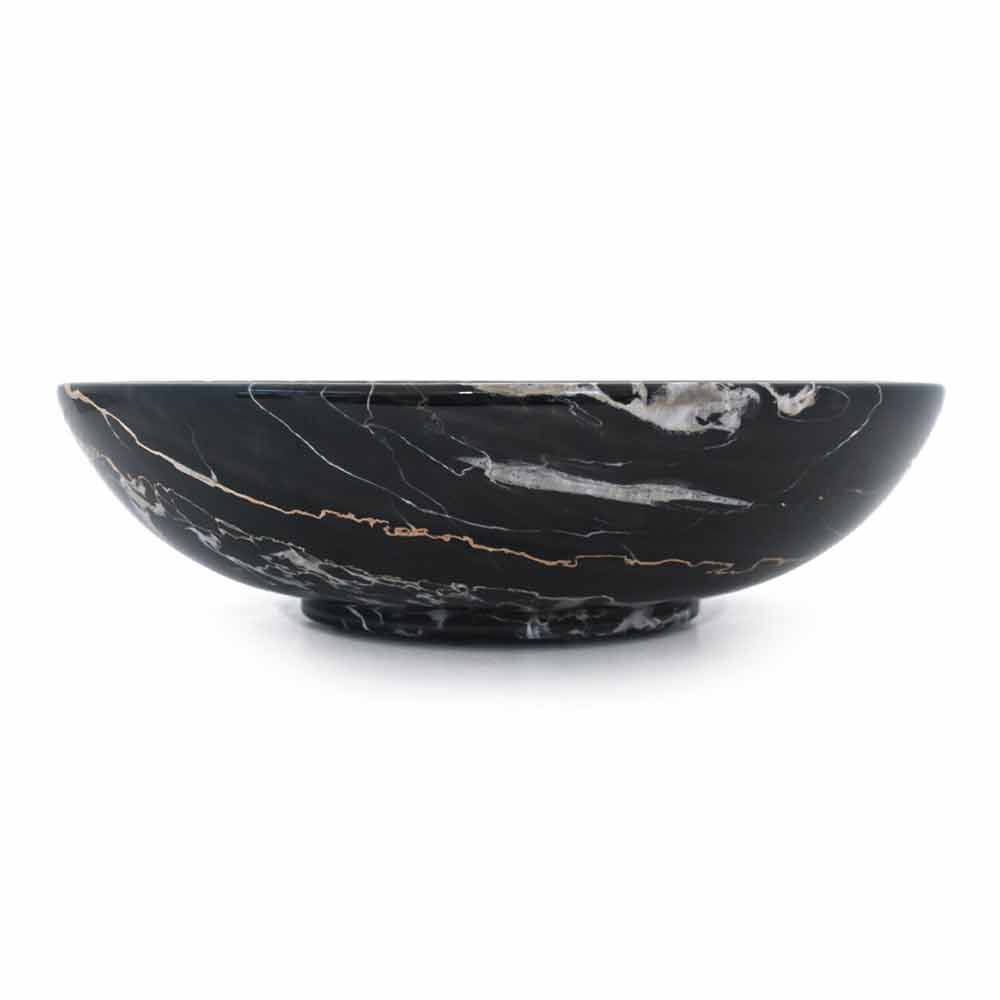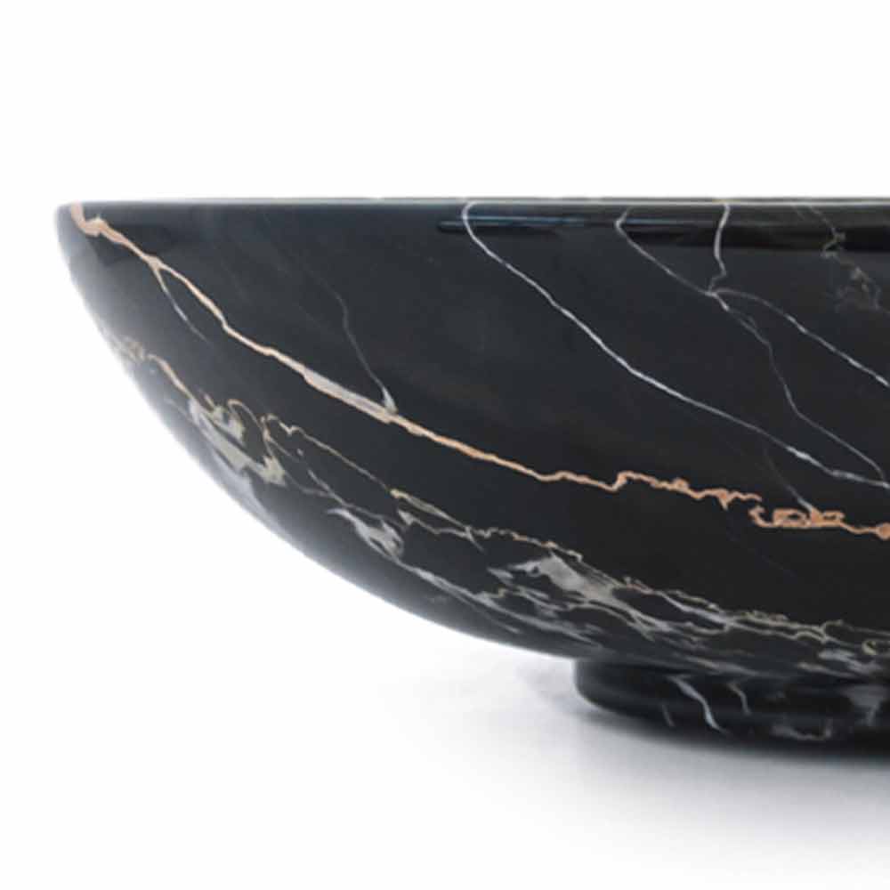 Round design fruit bowl in Portoro, Paonazzo or Marquinia marble Made in Italy.
