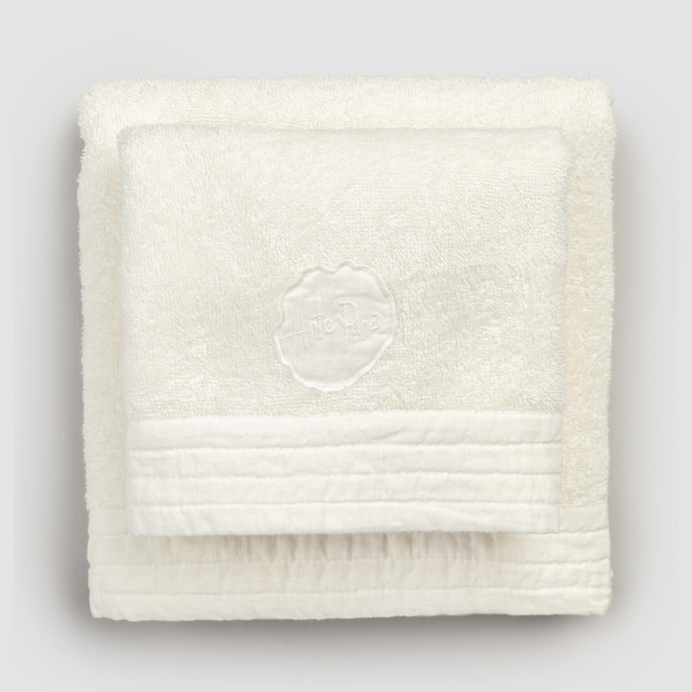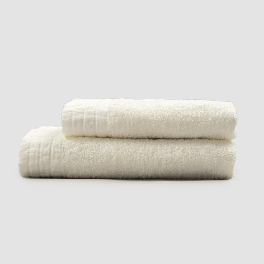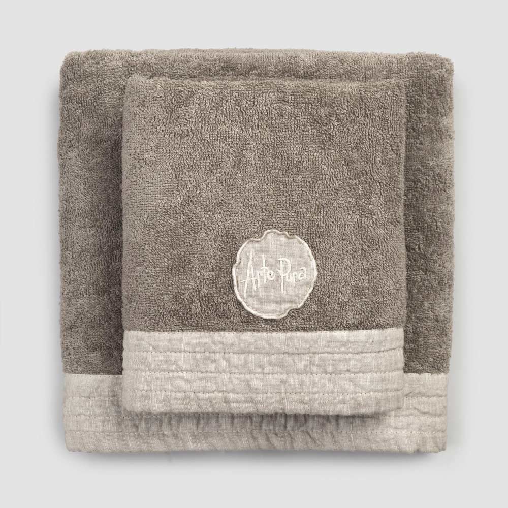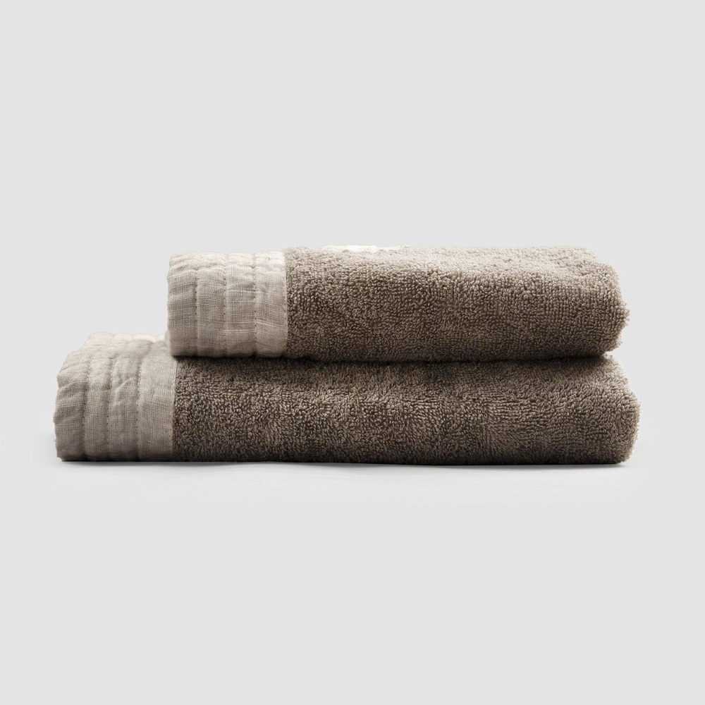 face and guest towels in cotton terry with a linen blend border