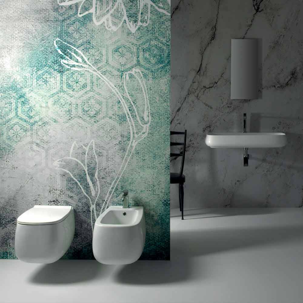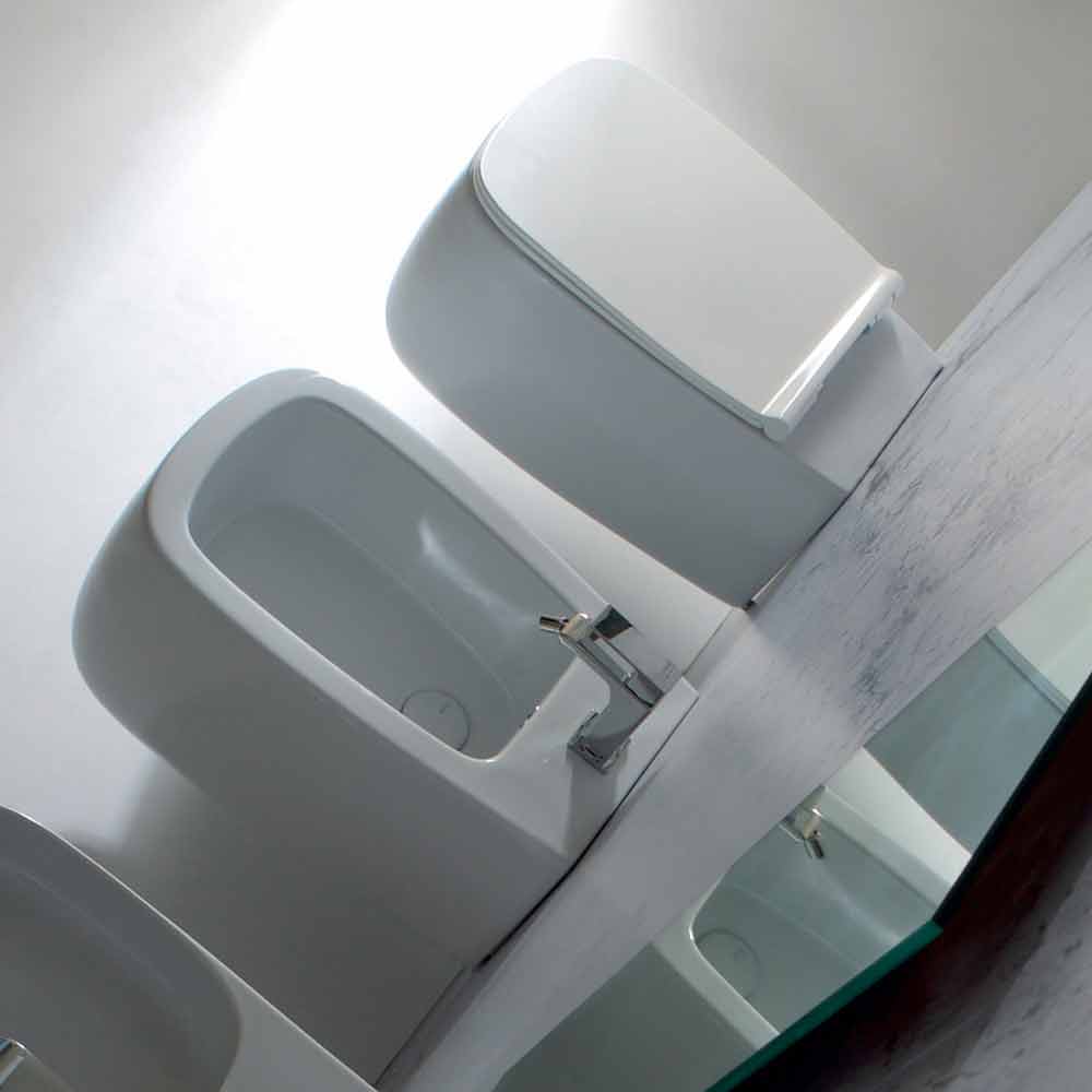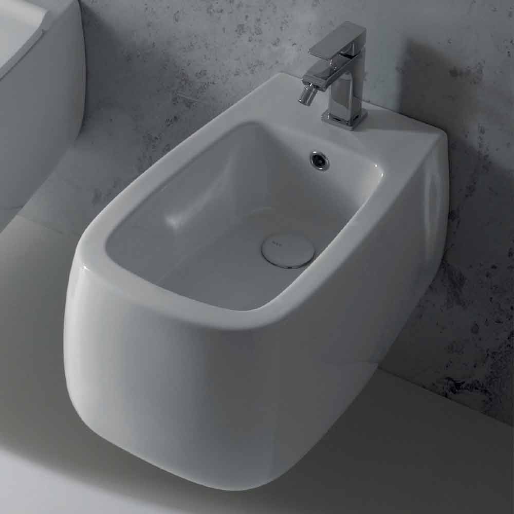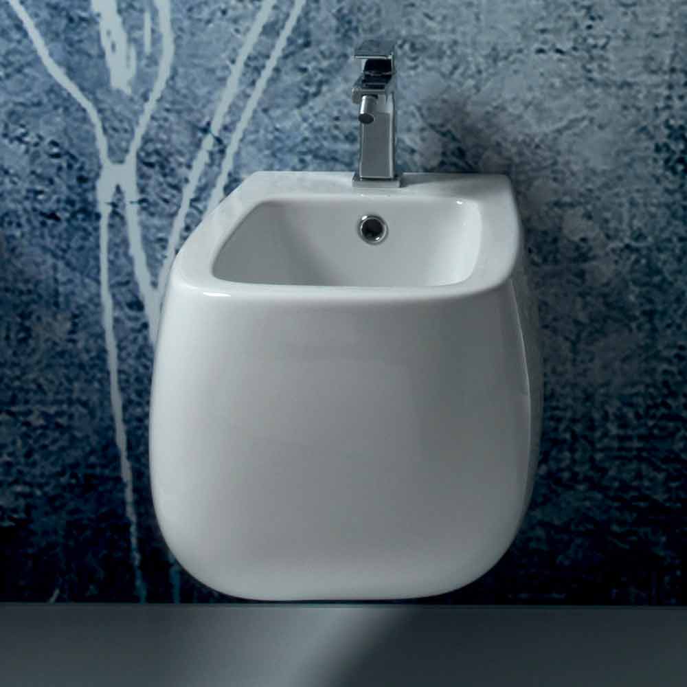 Modern wall hung bidet in white ceramic made in Italy, Gaiola