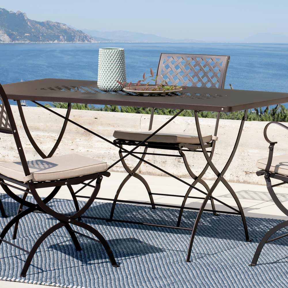 This garden table is designed to be a striking yet extremely durable piece of furniture thanks to the quality of its materials. This is a product made 100% in Italy . Its structure is made of steel and is strengthened by a galvanizing process to make this product resistant to corrosive and atmospheric agents . Its foldable structure makes this table a perfect piece of furniture for moments of conviviality and is excellent for optimizing spaces at a later time.