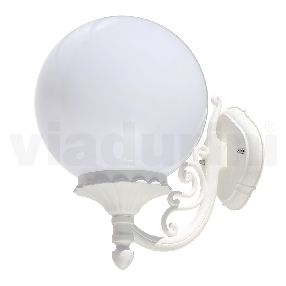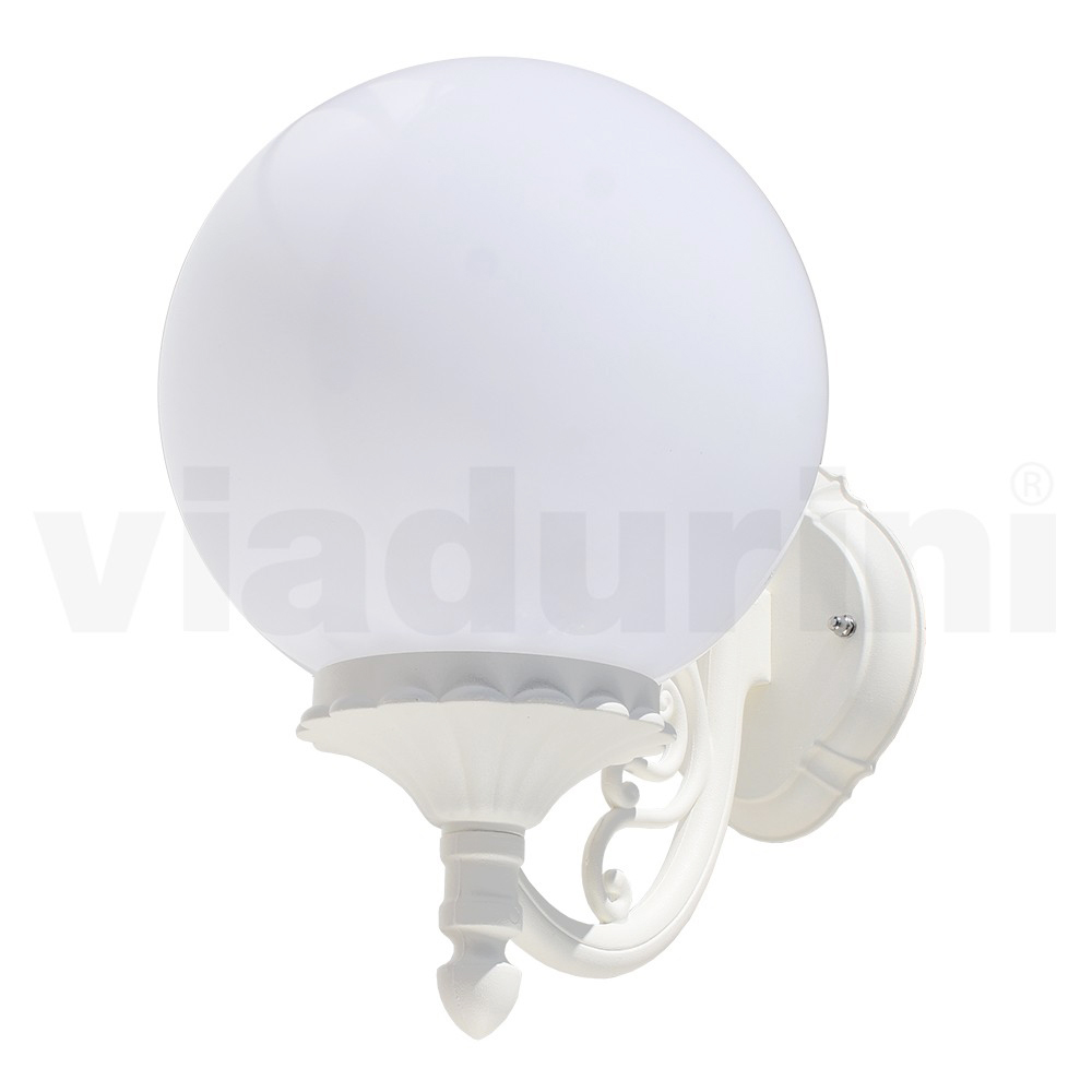 Garden Applique in White Aluminium with Opal Sphere - Trovabianco