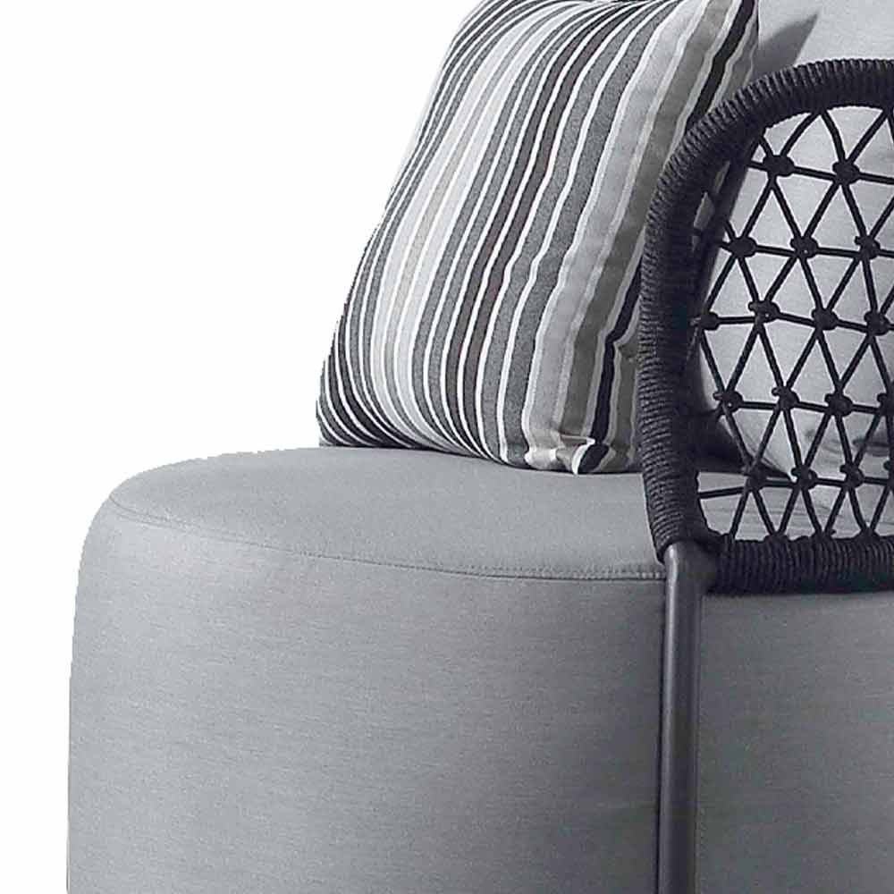 Outdoor armchair in grey fabric with mesh and aluminium structure.