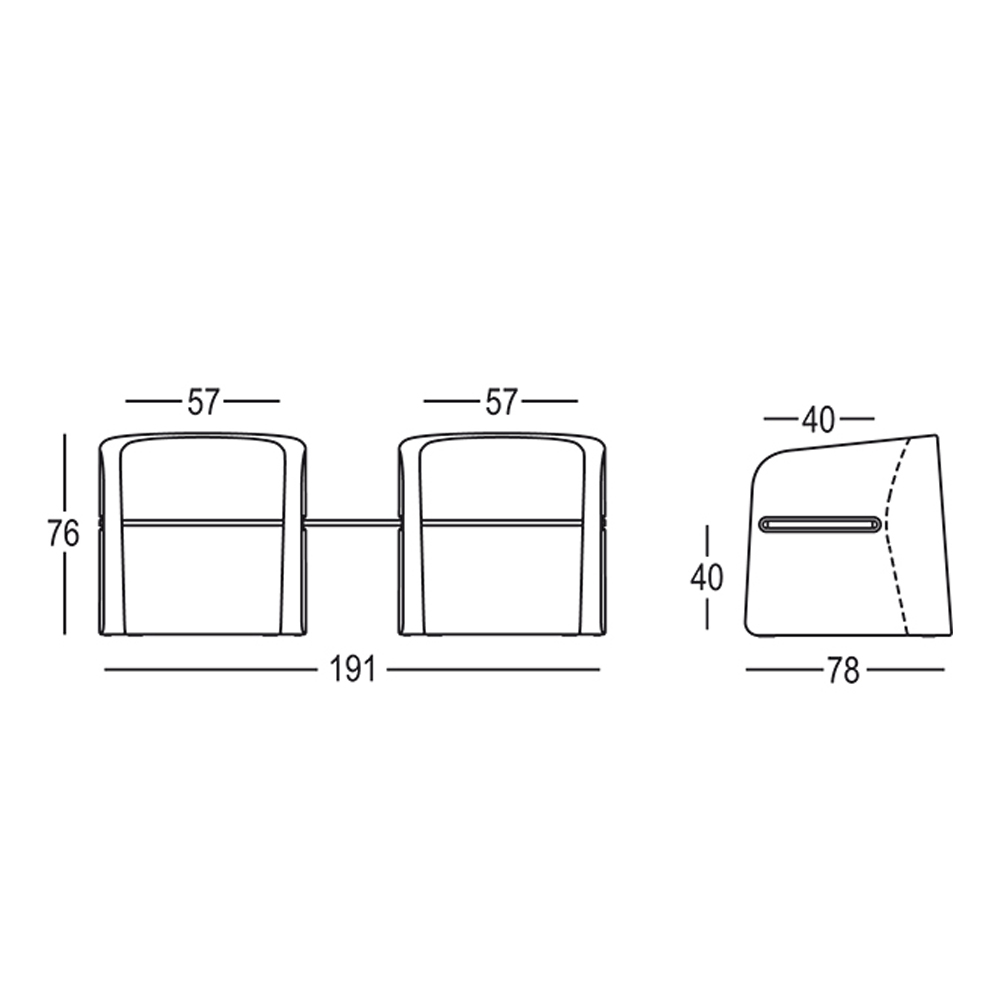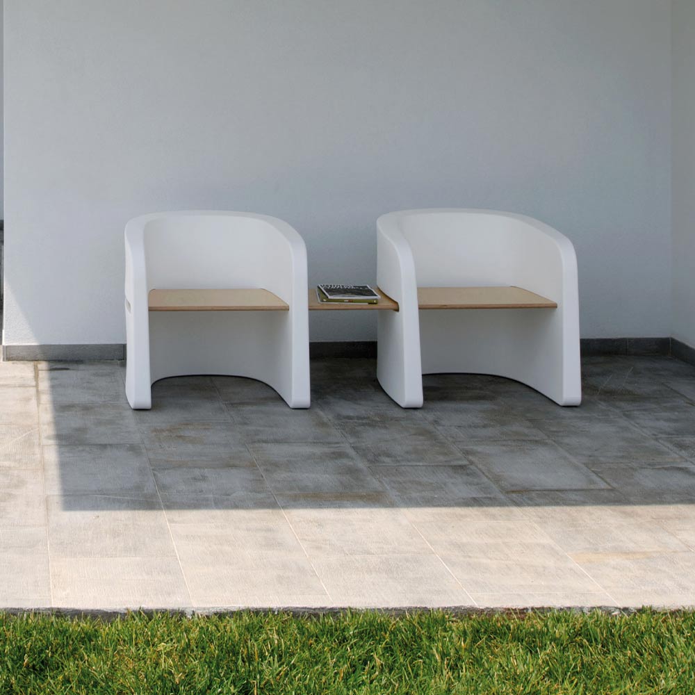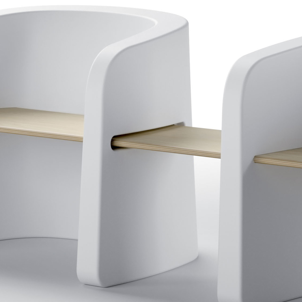 birch wood which also generates a practical support surface between the two seats. An idea of furniture