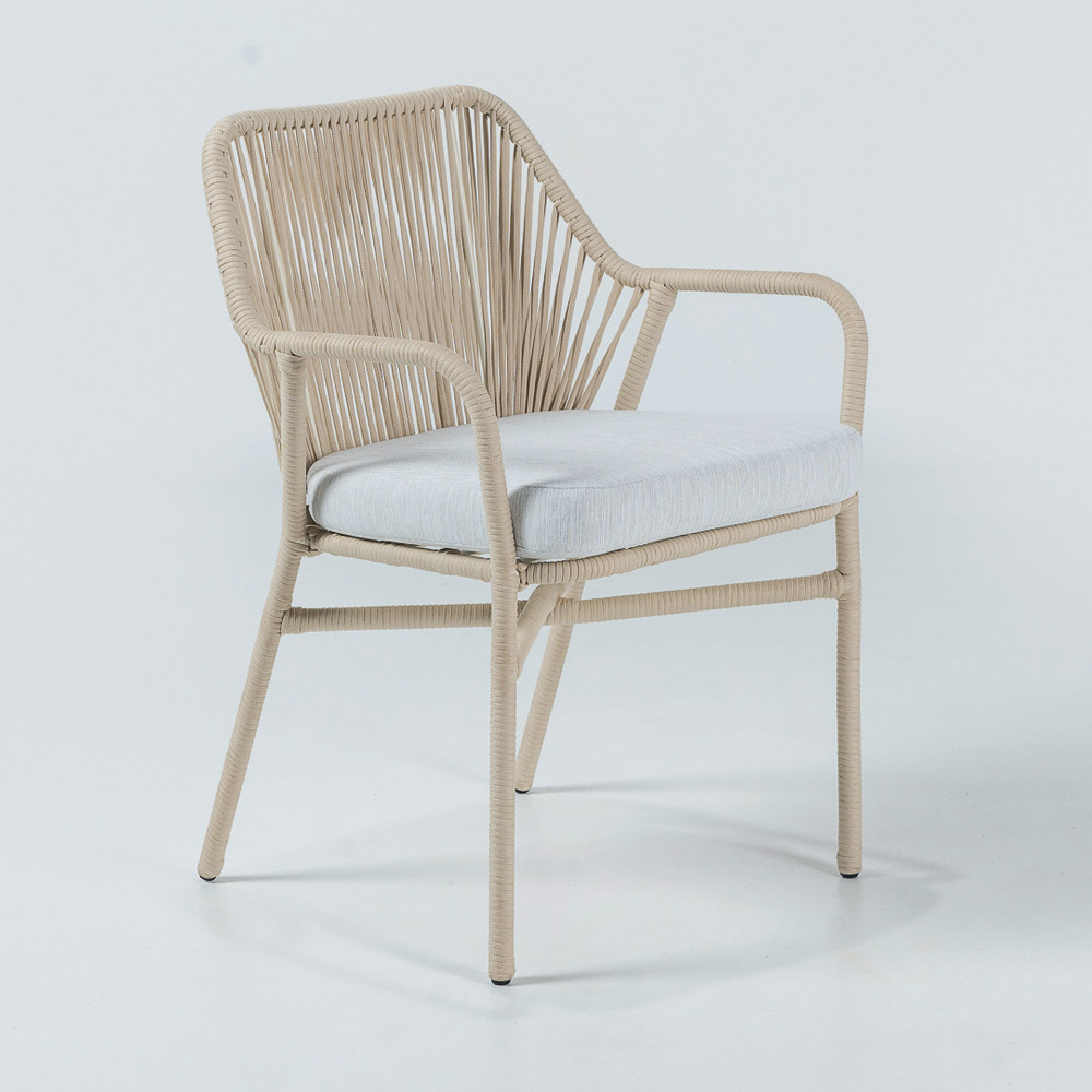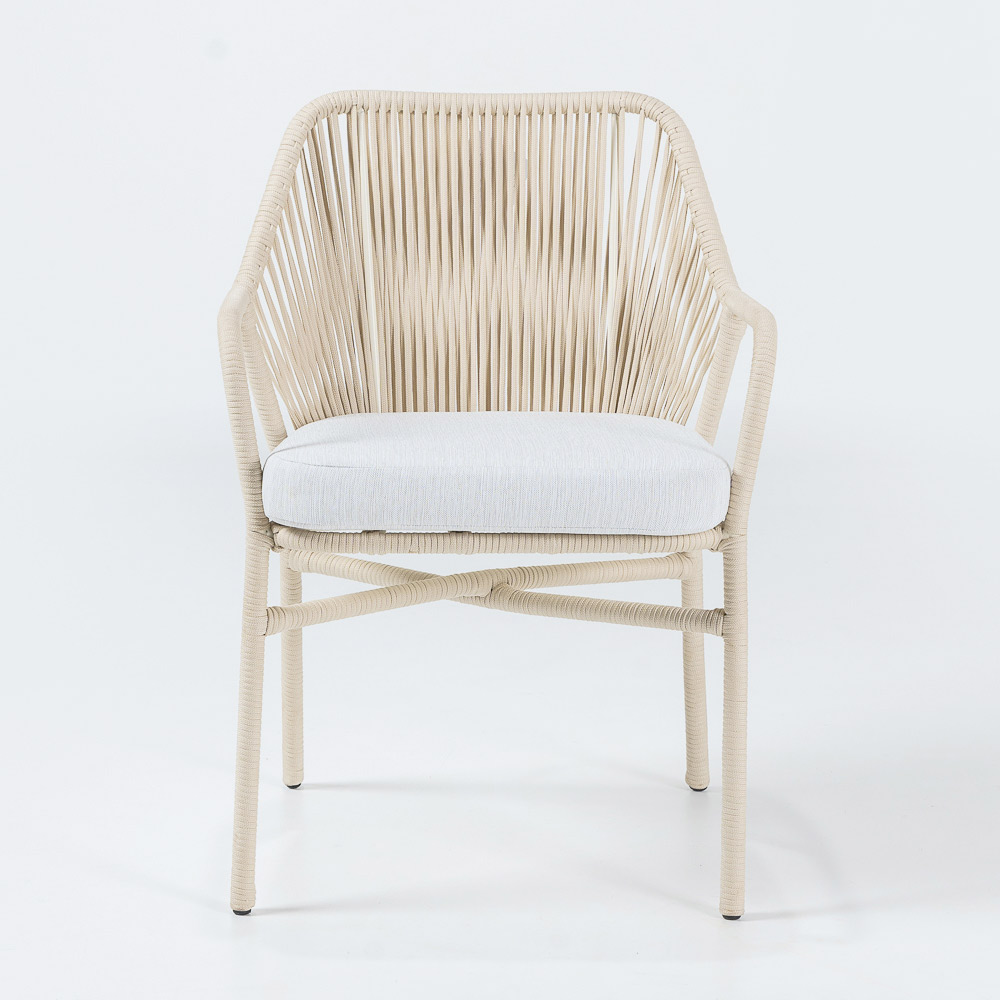 Outdoor armchair made with aluminium frame, Olefin/PP ROPE weave and seat cushion in olefin in the series colour "off white".