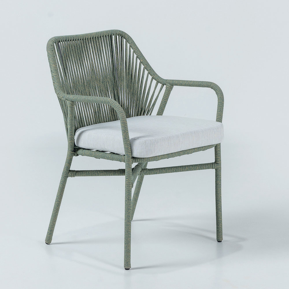 Garden armchair in aluminium, rope weave and seat cushion
