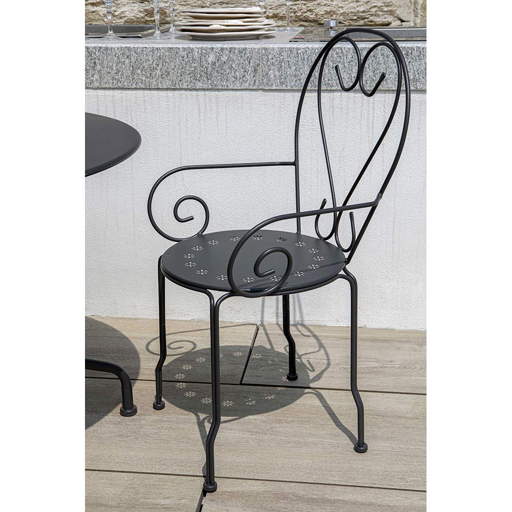 The armchair is made of weatherproof metal , ideal for enjoying moments of relaxation in the garden, on the terrace or in a cosy corner of your patio. The attention to detail and the finish make this armchair versatile and suitable for different decorative styles, from the most classic and romantic to the modern and minimalist.