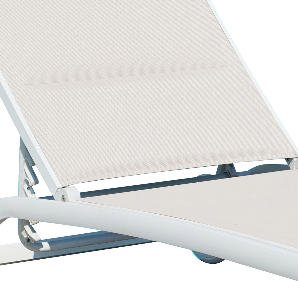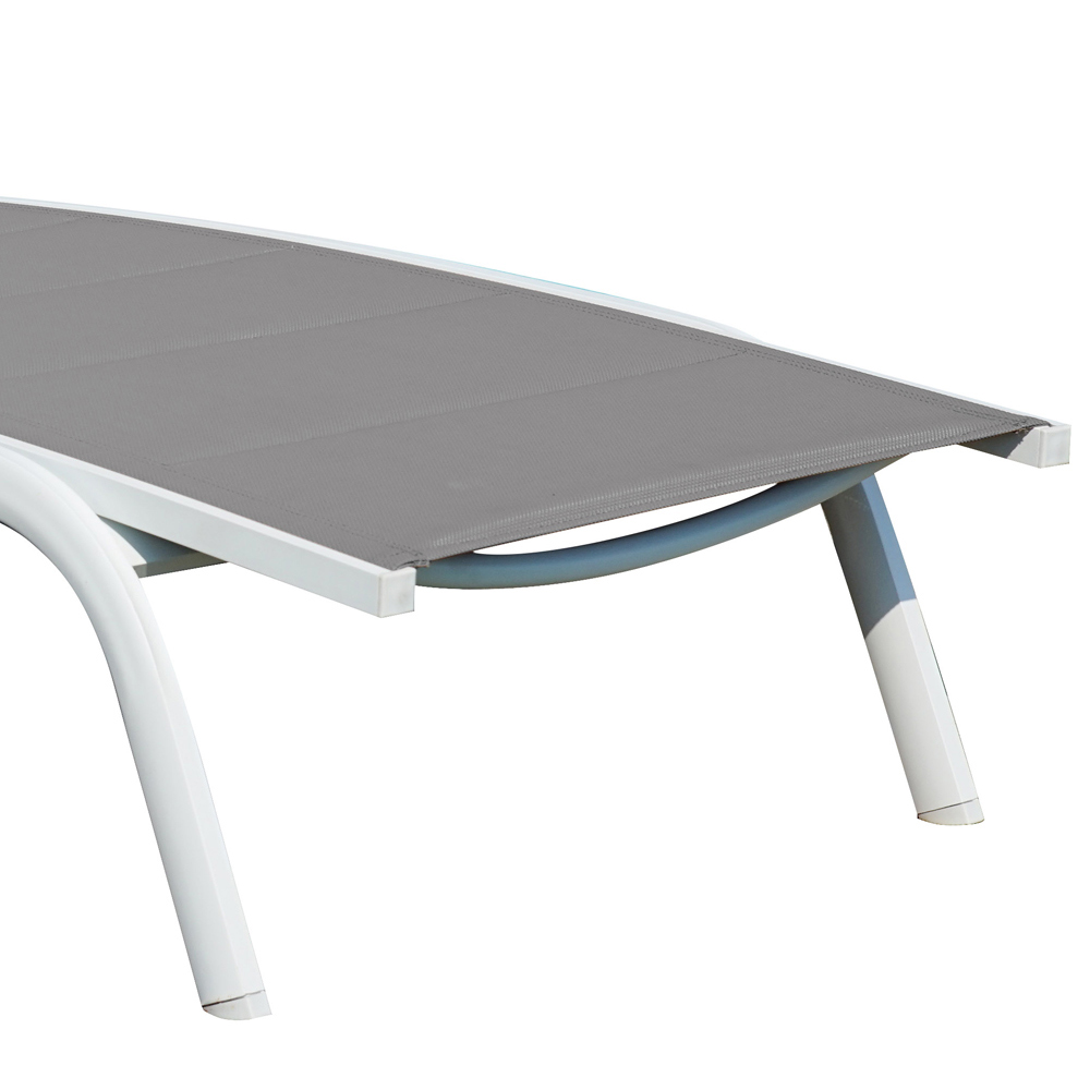 600 gr padded textilene. The modern style and the functionality make this chaise longue a perfect solution to enrich any outdoor space with an exclusive touch while offering a