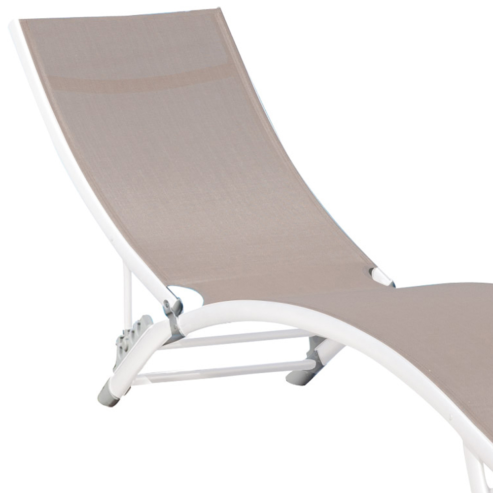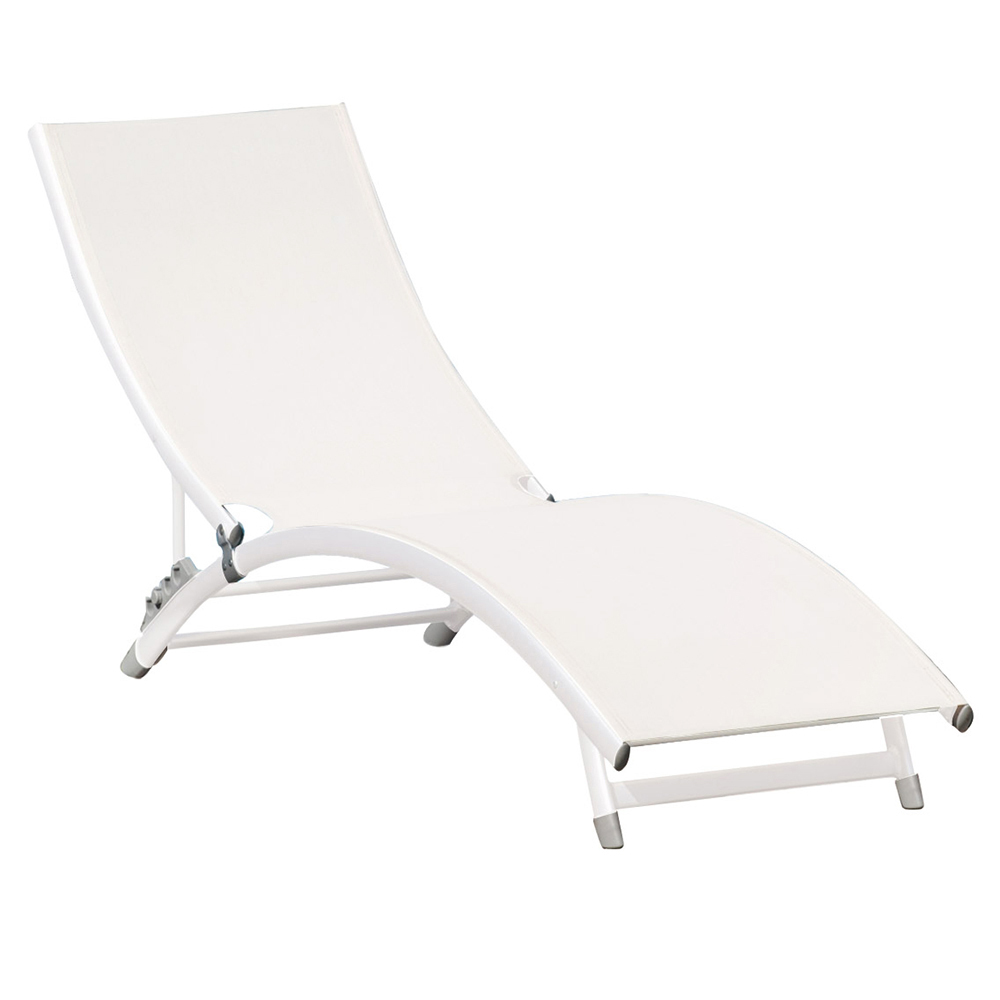 Outdoor chaise longue with aluminium structure and textilene seat.