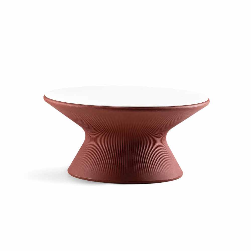 Garden coffee table in polyethylene with round top in HPL, Made in Italy.
