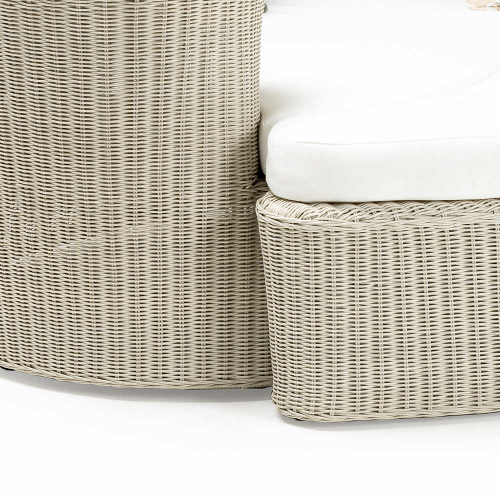 This lounger is characterized by its rounded design and full weave. Its soft and sinuous volumes blend perfectly with the large seat that allows you to enjoy optimal relaxation. The Donna daybed is made up of two complementary elements that can be joined at will to form a single chaise-lounge or two separate seats, depending on the occasion.