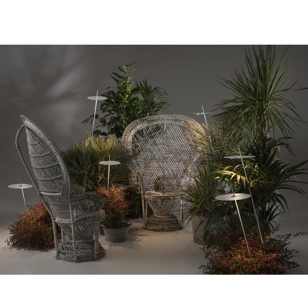 This original and unique floor lamp for the garden features a modern design with a water lily leaf shape.
