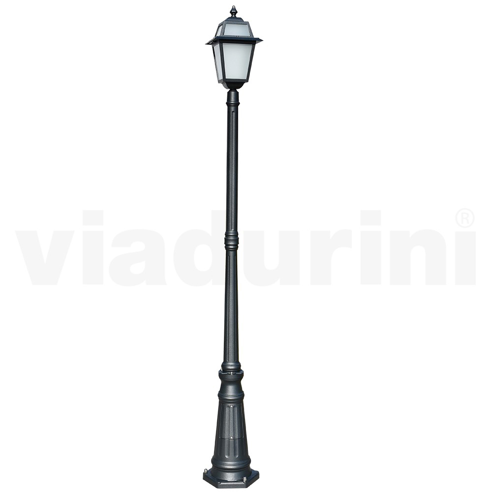Made in Italy. This cast aluminium street lamp with its anthracite finish is a stylish choice for any outdoor setting. With a classic and elegant design, it features crafted details that evoke an atmosphere of times gone by. The lantern, with attention to the smallest details, diffuses a warm and soft light, ideal for creating a luminous path in your garden or for classily delimiting an outdoor relaxation area. Solidity and beauty come together in this street lamp, designed to last over time and resist atmospheric agents. Elegant and functional , it will be the luminous signature of your outdoor space.