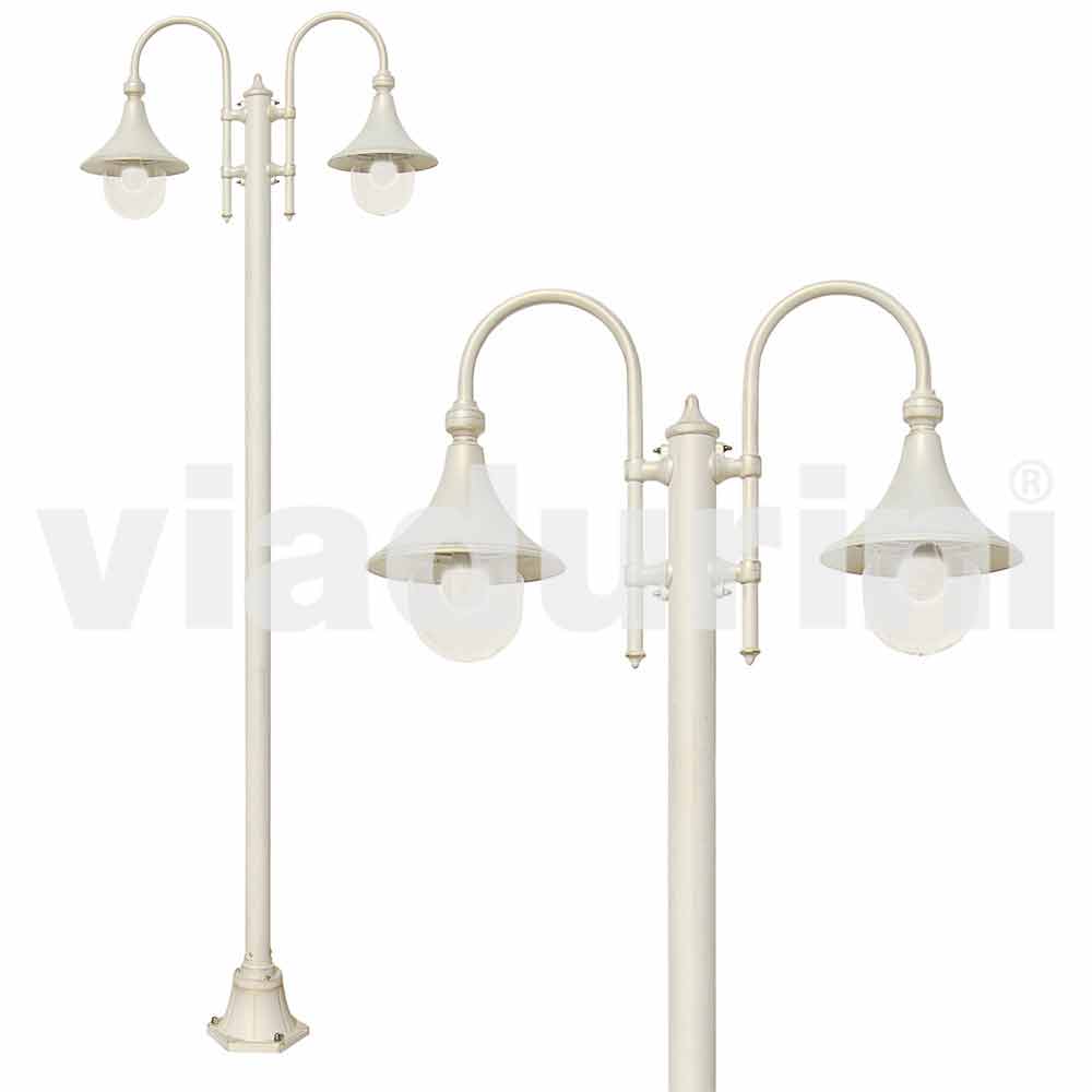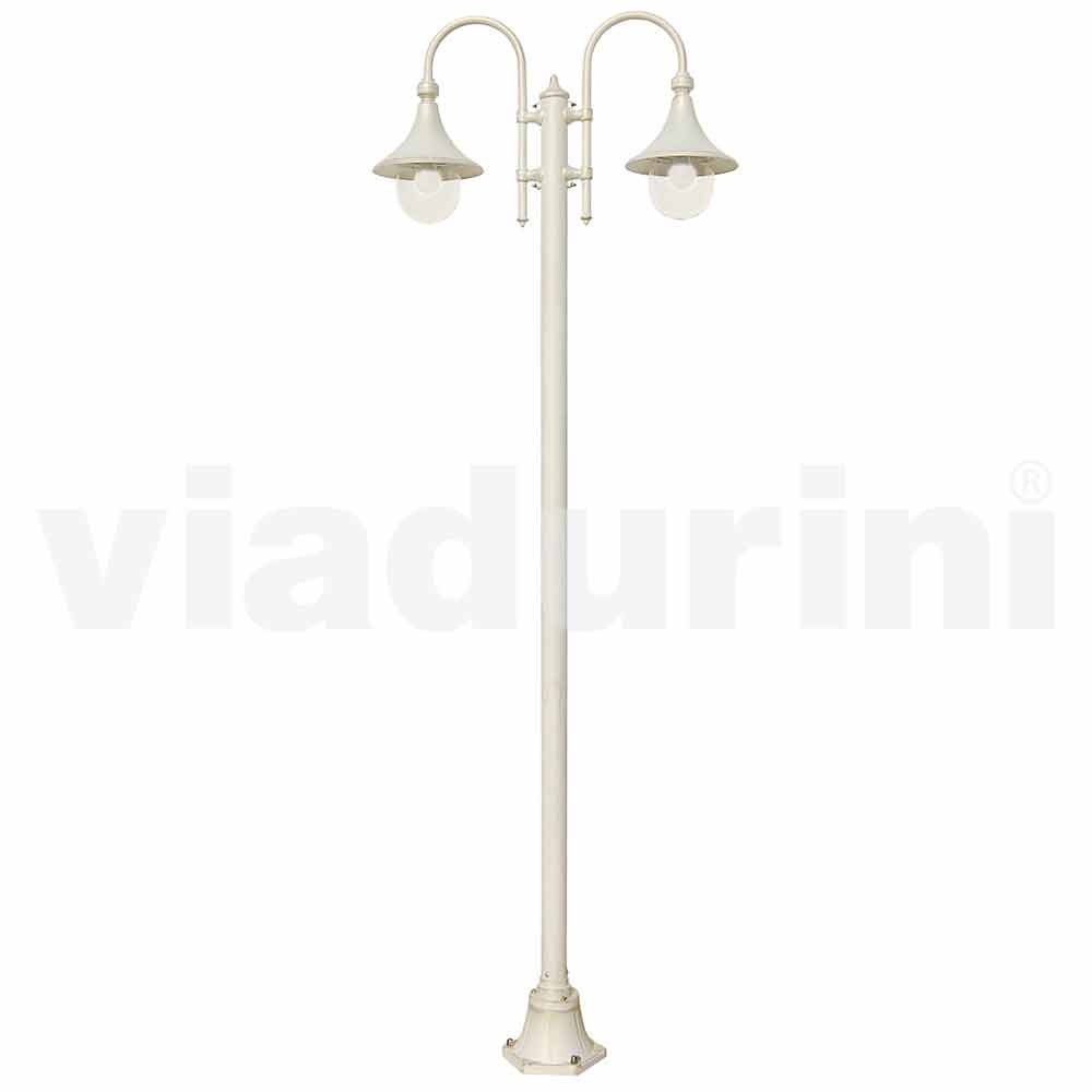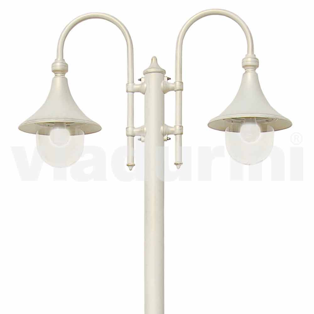 Two-light garden lamp in white aluminium made in Italy, Anusca