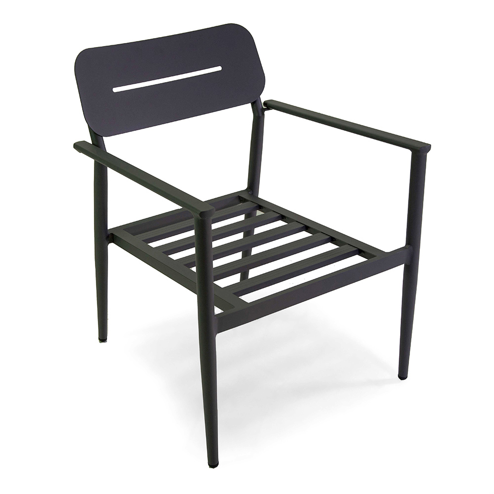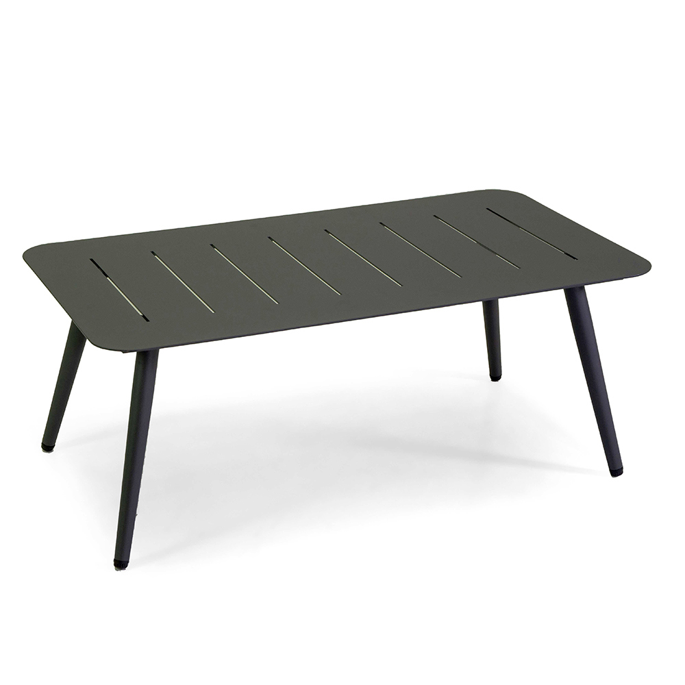 The coordinated table with its essential design completes the ensemble, offering a practical solution for placing drinks or books, making your outdoor space a true extension of the living area, ideal for moments of relaxation or for receiving guests.