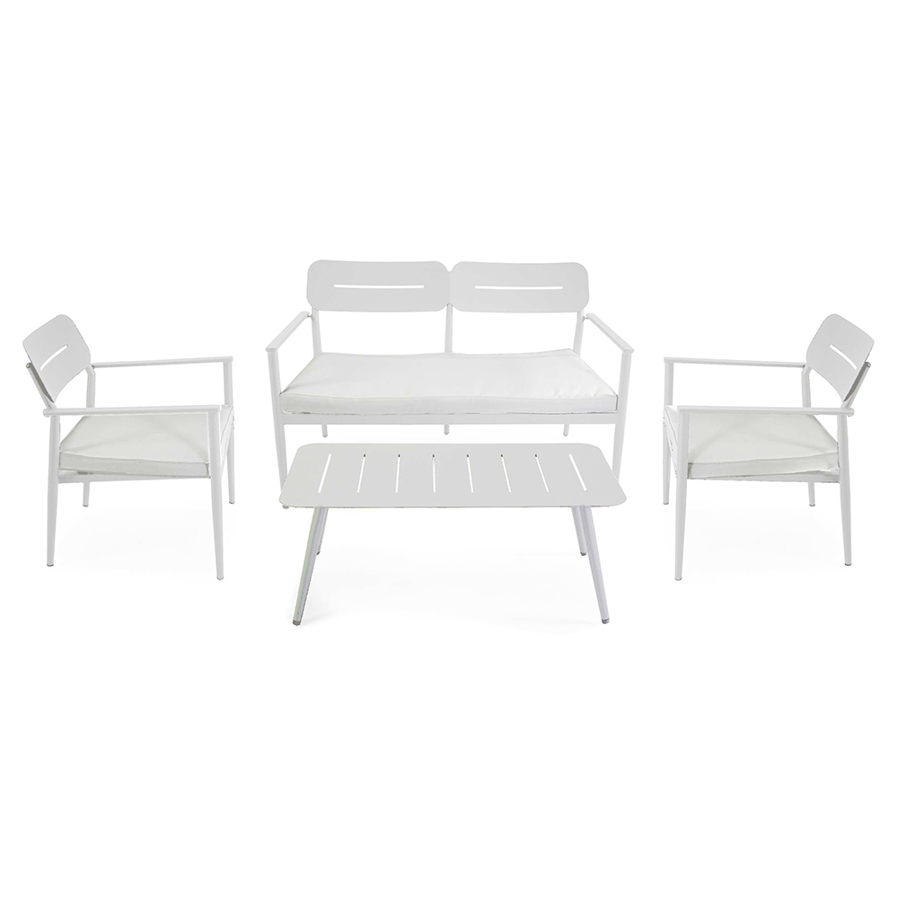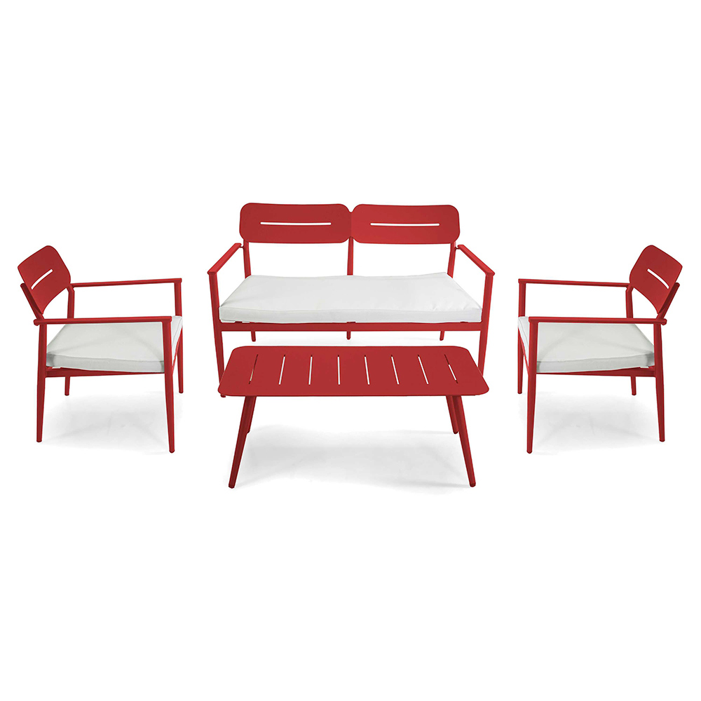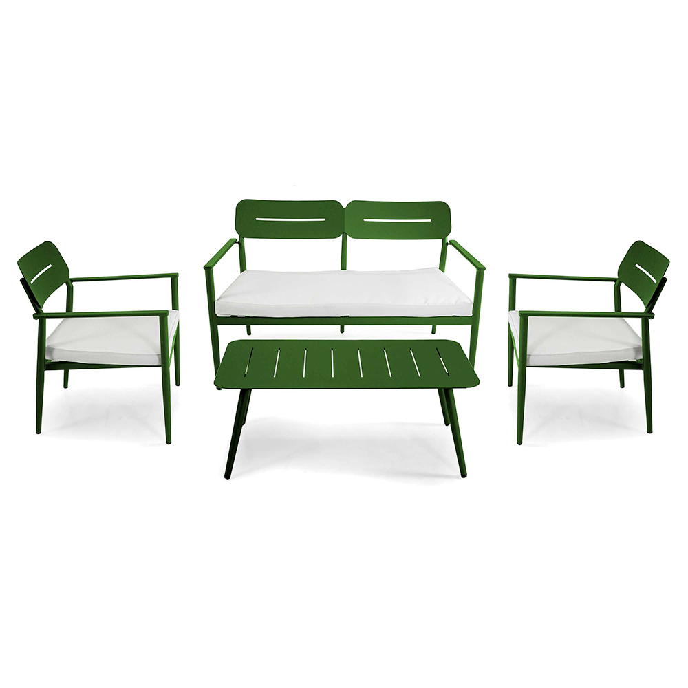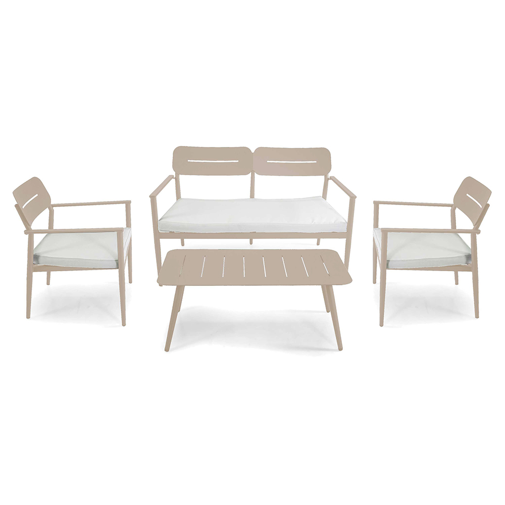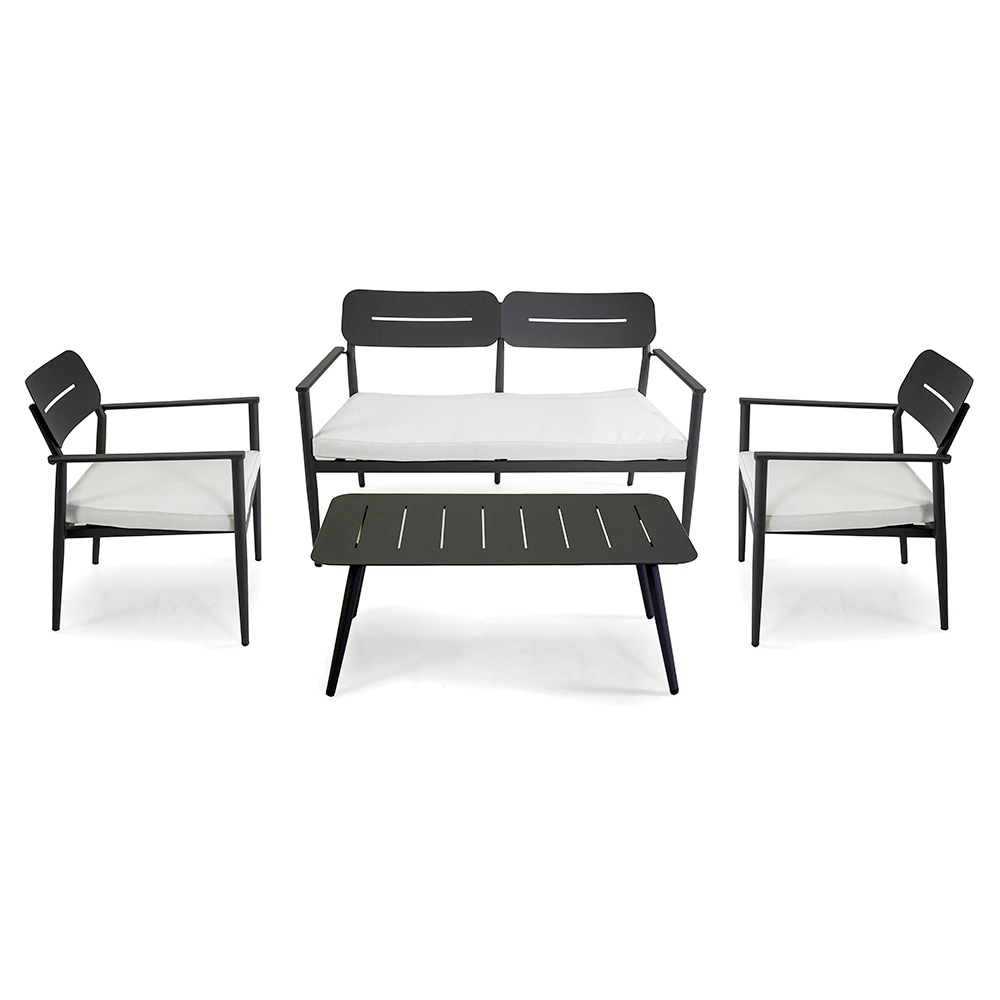This outdoor lounge combines functionality and modern style , perfect for those who want to furnish outdoor spaces with taste. The aluminum frame is both elegant and sturdy, ensuring long life and easy maintenance. Each element of the set is designed to offer maximum comfort, from the armchair with its ergonomic backrest, to the spacious sofa with soft and inviting cushions.